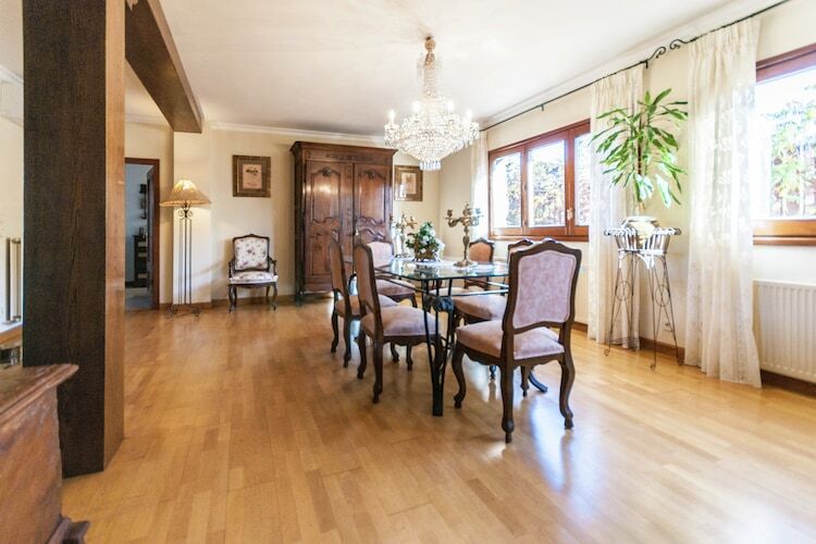 Rez-de-chaussée: (cuisine(grille-pain, cafetière/percolateur(pads), four, micro ondes, lave-vaisselle , combinaison réfrigérateur/congélateur), salle à manger-salon(TV, table, cheminée, climatisation), chambre(lit double(150 x 200 cm)), chambre(lit double(150 x 200 cm)), salle de bains(douche, lavabo, WC), buanderie (sèche-linge, lave-linge , table à repasser, fer à repasser), véranda(coin salon)) Au 1er étage: (chambre(Accessible par la pièce de passage)(2x lit simple(90 x 200 cm), climatisation), chambre avec salle de bains(lit double grande taille(180 x 200 cm), baignoire-douche, douche, lavabo, WC, balcon ou terrasse, climatisation), remise) garage, patio, terrasse, jardin, jardin(clôturé, aménagé, 1000 m2), garage à vélos, mobilier de jardin, transats, barbecue, parking, chaises longues, piscine(privé, 10 x 5 m.), vélos disponibles
