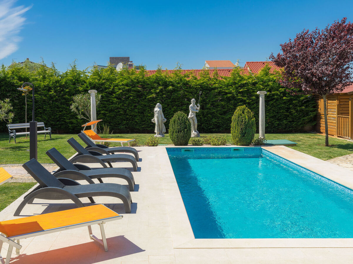 A usage privé: terrain 900 m2 (clôturé) avec pelouse, piscine rectangulaire (9 x 3 m, 31 m2, profondeur 150 cm, disponibilité saisonnière: 01.Mai.