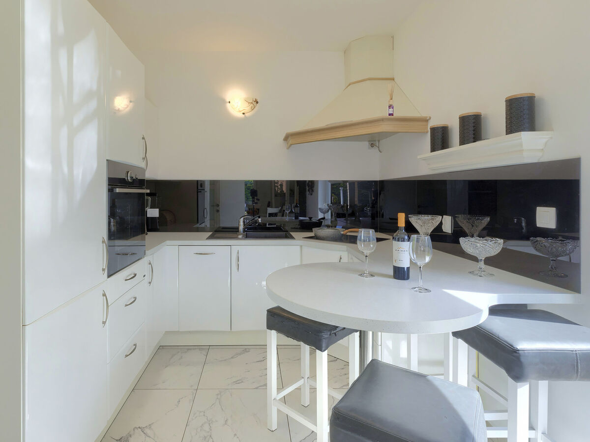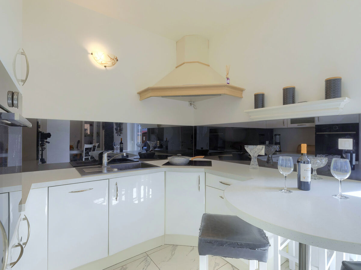 Cuisine ouverte (four, lave-vaisselle, 4 plaques vitrocéramiques, grille-pain, bouilloire électrique, congélateur, cafetière électrique).