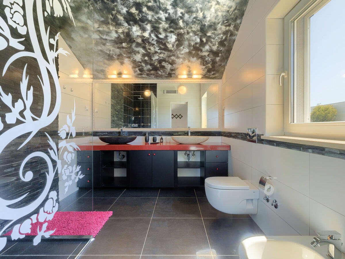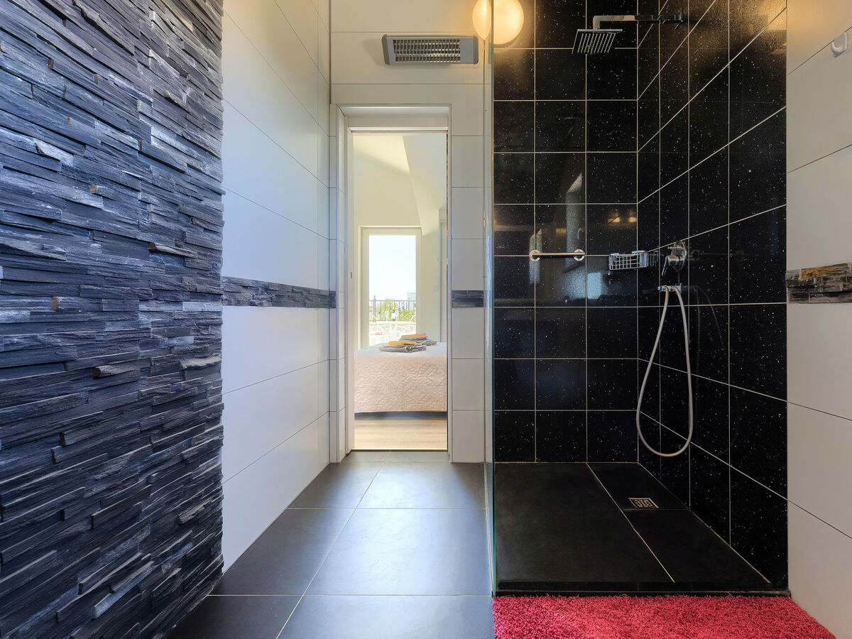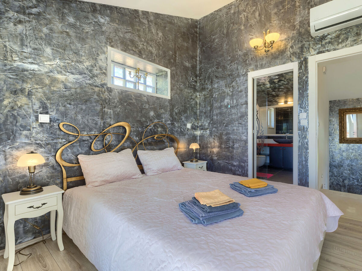 1 chambre avec 1 grand-lit (160 cm, longueur 200 cm), douche/WC, double vasque et air-conditionné.