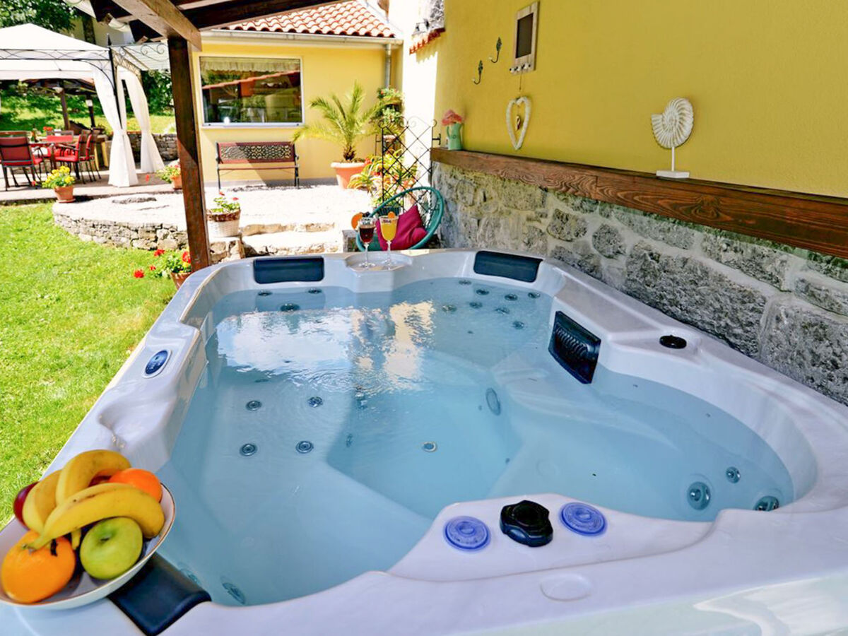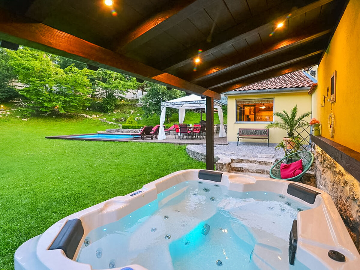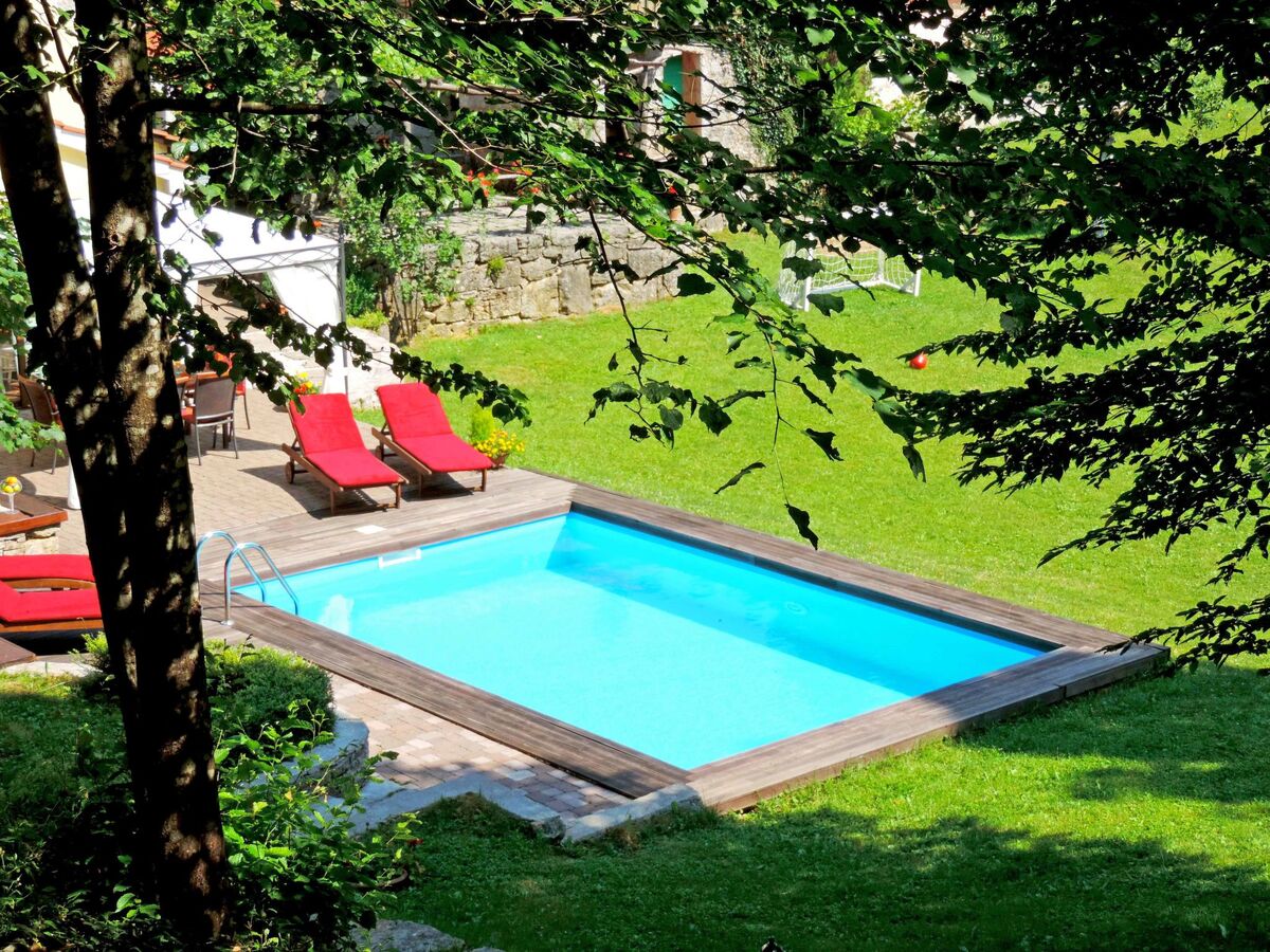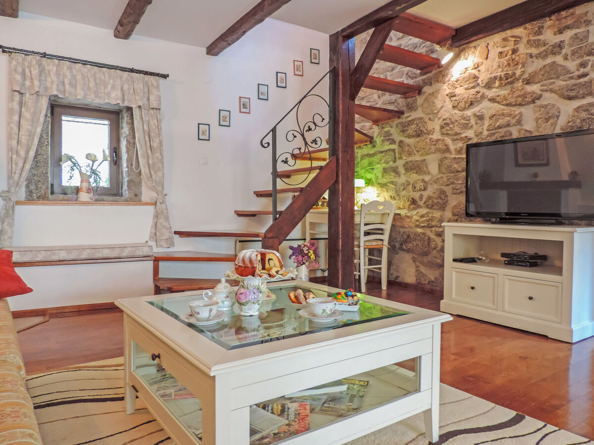 Dans le hameau de Škalniški avec 6 maisons, à 4 km du centre de Jurdani, à 8.5 km du centre de Matulji, à 12 km du centre d'Opatija, situation tranquille, à 12 km de la mer, dans une impasse, dans la verdure, dans la forêt.