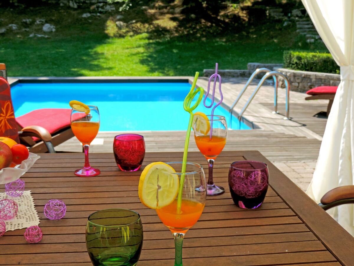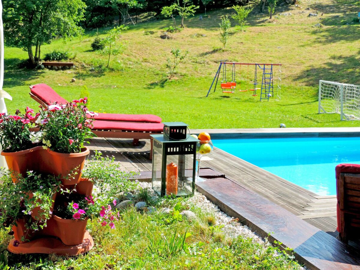 A usage privé: terrain 1'000 m2, pelouse 250 m2 arbres, piscine rectangulaire (6 x 4 m, profondeur 140 cm, disponibilité saisonnière: 25.Avr.