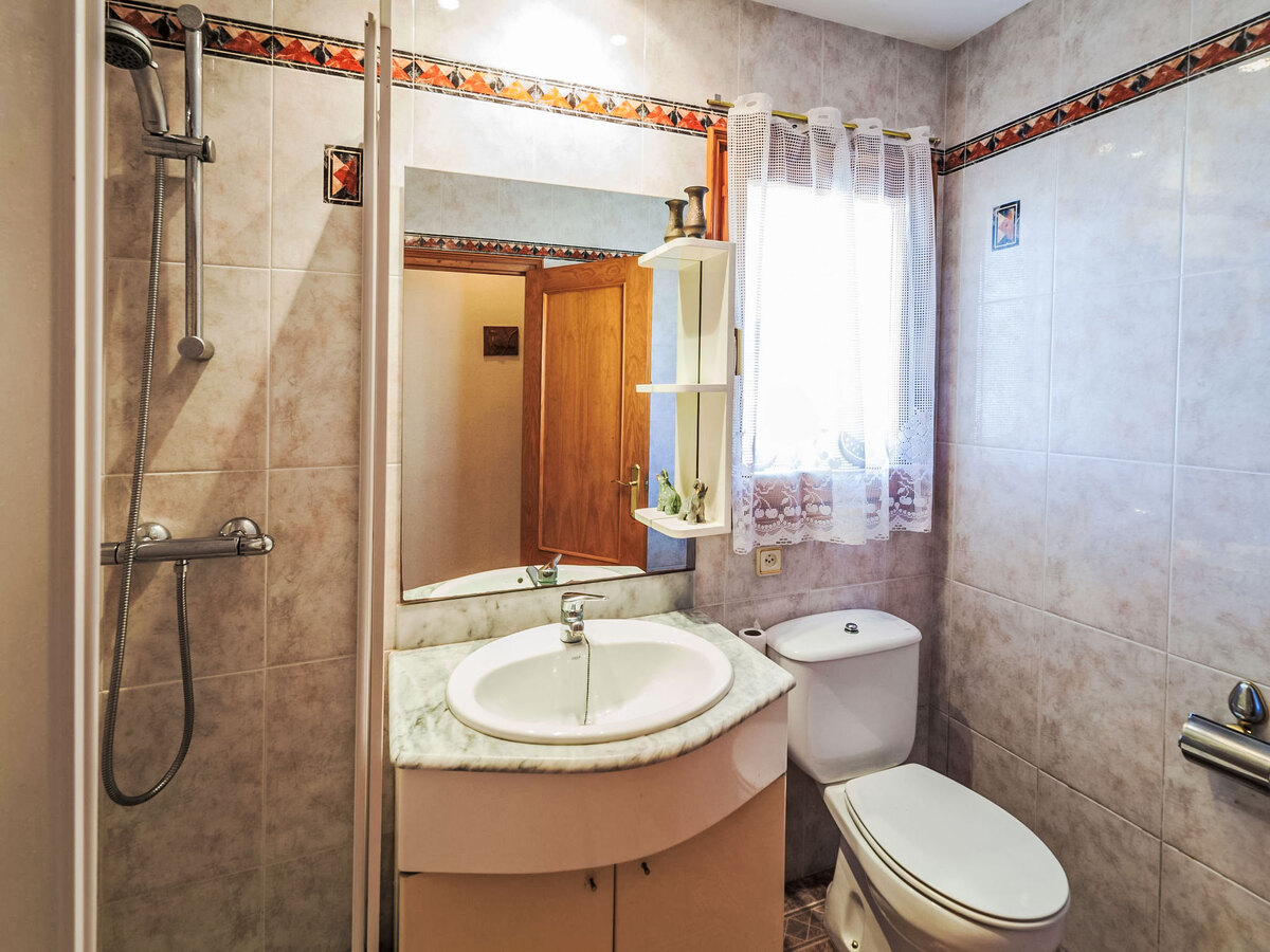 À l'étage supérieur: 1 chambre avec 1 grand-lit (135 cm, longueur 190 cm), douche/bidet/WC et ventilateur.