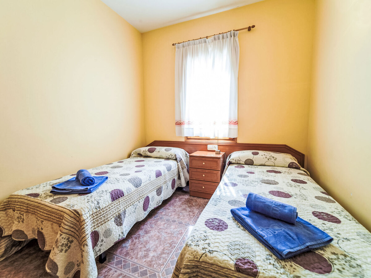 1 chambre avec 2 lits (80 cm, longueur 190 cm), ventilateur.