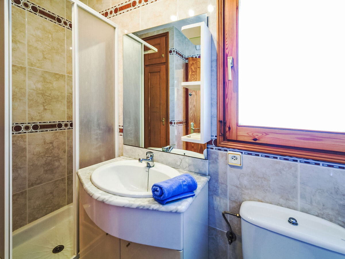 1 chambre avec 2 lits (80 cm, longueur 190 cm), douche/bidet/WC et ventilateur.