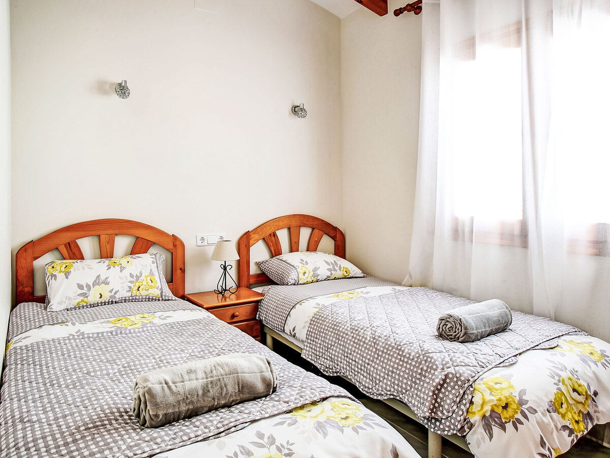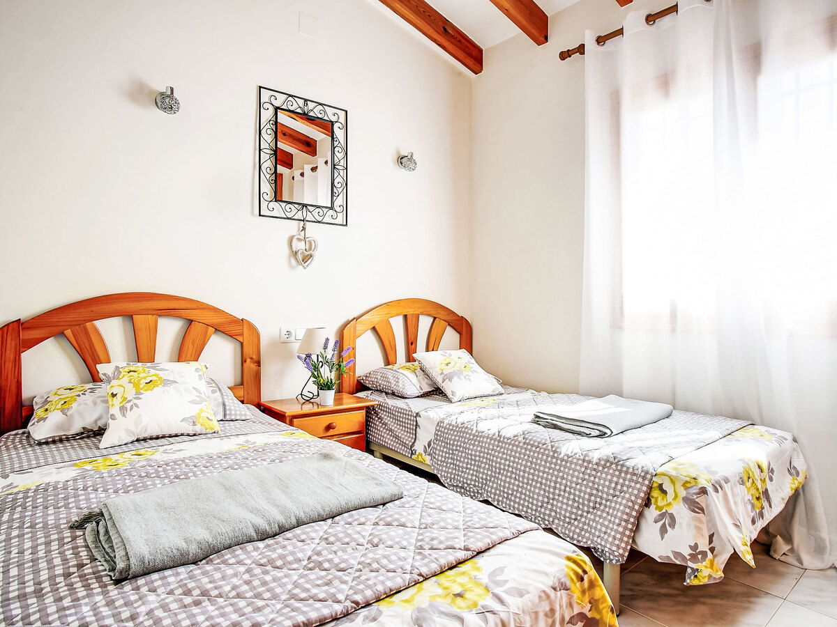 1 chambre avec 2 lits (90 cm), air-conditionné et chauffage à air chaud.