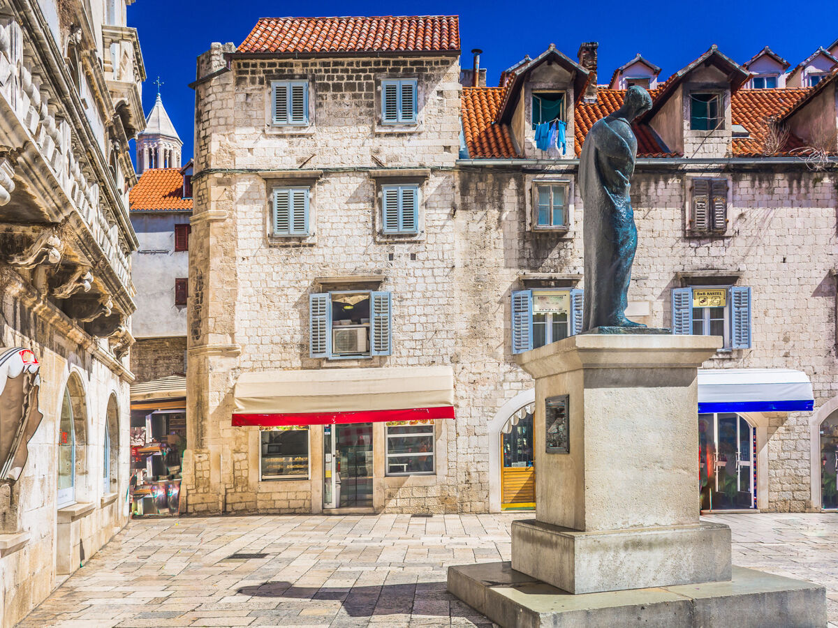 À 2 km du centre de Žrnovnica, à 10 km du centre de Split, situation tranquille, ensoleillée, surélevée, à 4.5 km de la mer.