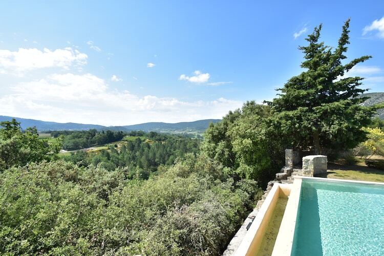 Cette belle maison de vacances a une piscine à débordement privée et une superbe vue sur le Mont Ventoux, un endroit de rêve pour y passer vos vacances.