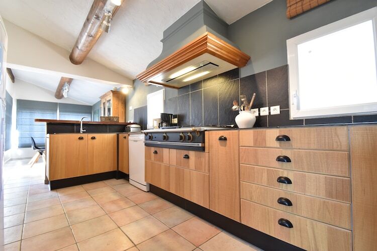 Rez-de-chaussée: (hall d'entrée, Salle de séjour(TV(écran plat), poêle(bois), coin salon, Lecteur DVD), salle à manger, cuisine(plaque de cuisson(gaz), cafetière/percolateur(cups, filtre), four, micro ondes, lave-vaisselle , combinaison réfrigérateur/congélateur), chambre avec salle de bains(lit double(160 x 200 cm), baignoire, douche, 2x lavabo, WC), salle de bains(douche, 2x lavabo), bureau, WC, buanderie ) Au 1er étage: (chambre(lit double(160 x 200 cm)), chambre avec salle de bains(lit double(160 x 200 cm), douche, lavabo, WC)) garage, lave-linge , chauffage(électrique), climatisation, terrasse(couverte, 20 m2), jardin(privé, clôturé, 3000 m2), mobilier de jardin, transats, barbecue(charbon de bois), parking, chaises longues, parasol, piscine(privé, alarme de piscine, 12 x 9 m., ouvert de Mai jusqu'à (inclus) Sept), terrain de pétanque, lit d'enfant, table à repasser, jeux de société