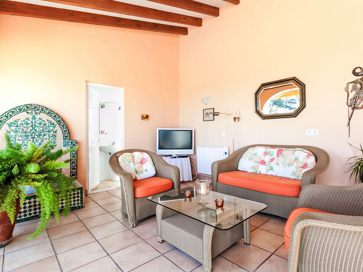 Séjour avec cheminée, TV, TV (satellite), radio, lecteur CD, chaîne stéréo et DVD.