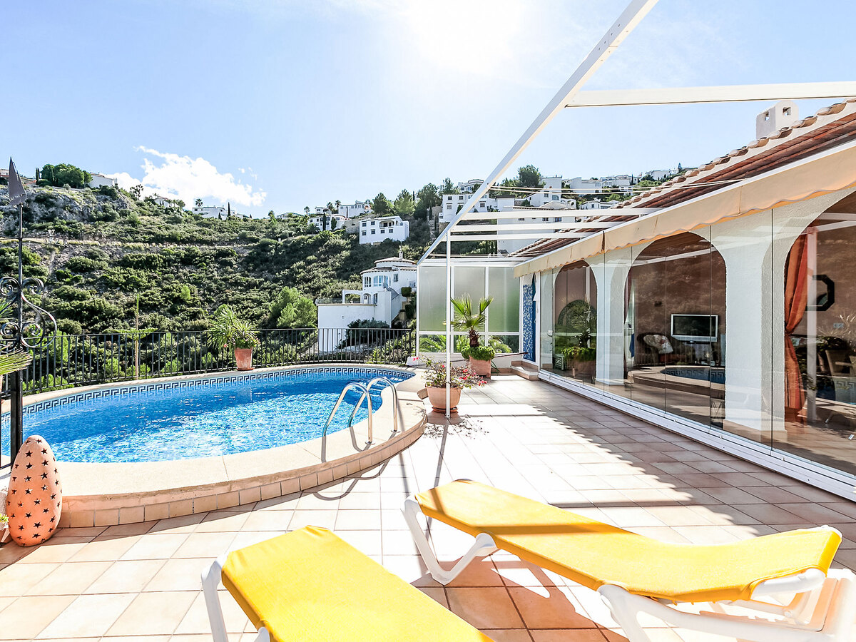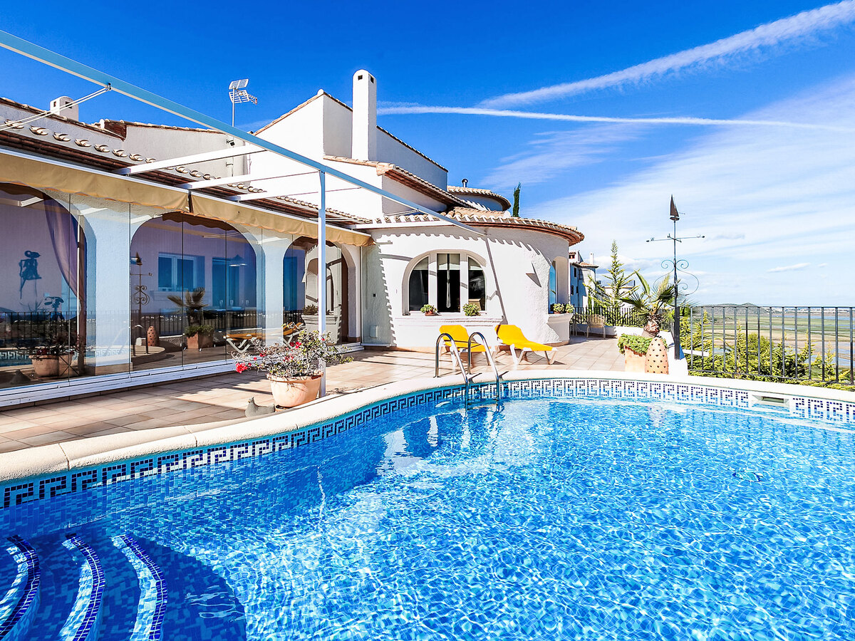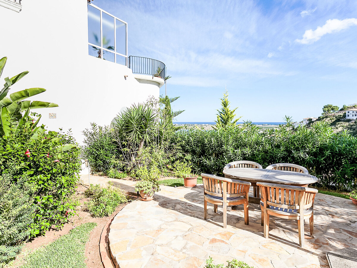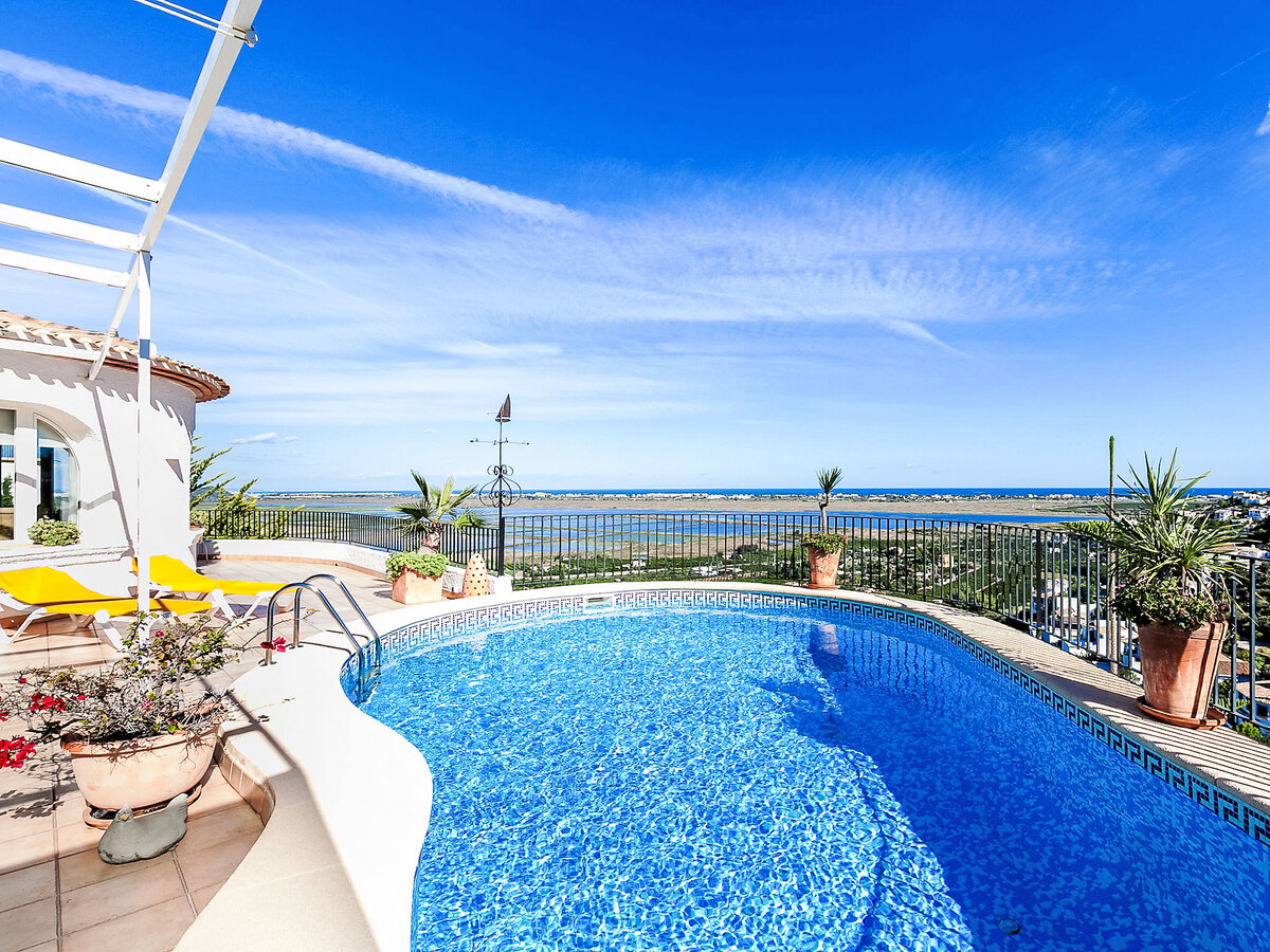 Superbe vue panoramique sur la mer, les montagnes, la vallée, la piscine, le jardin et la baie.