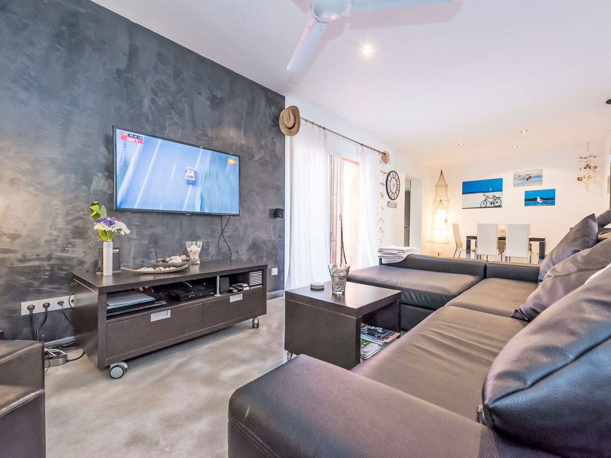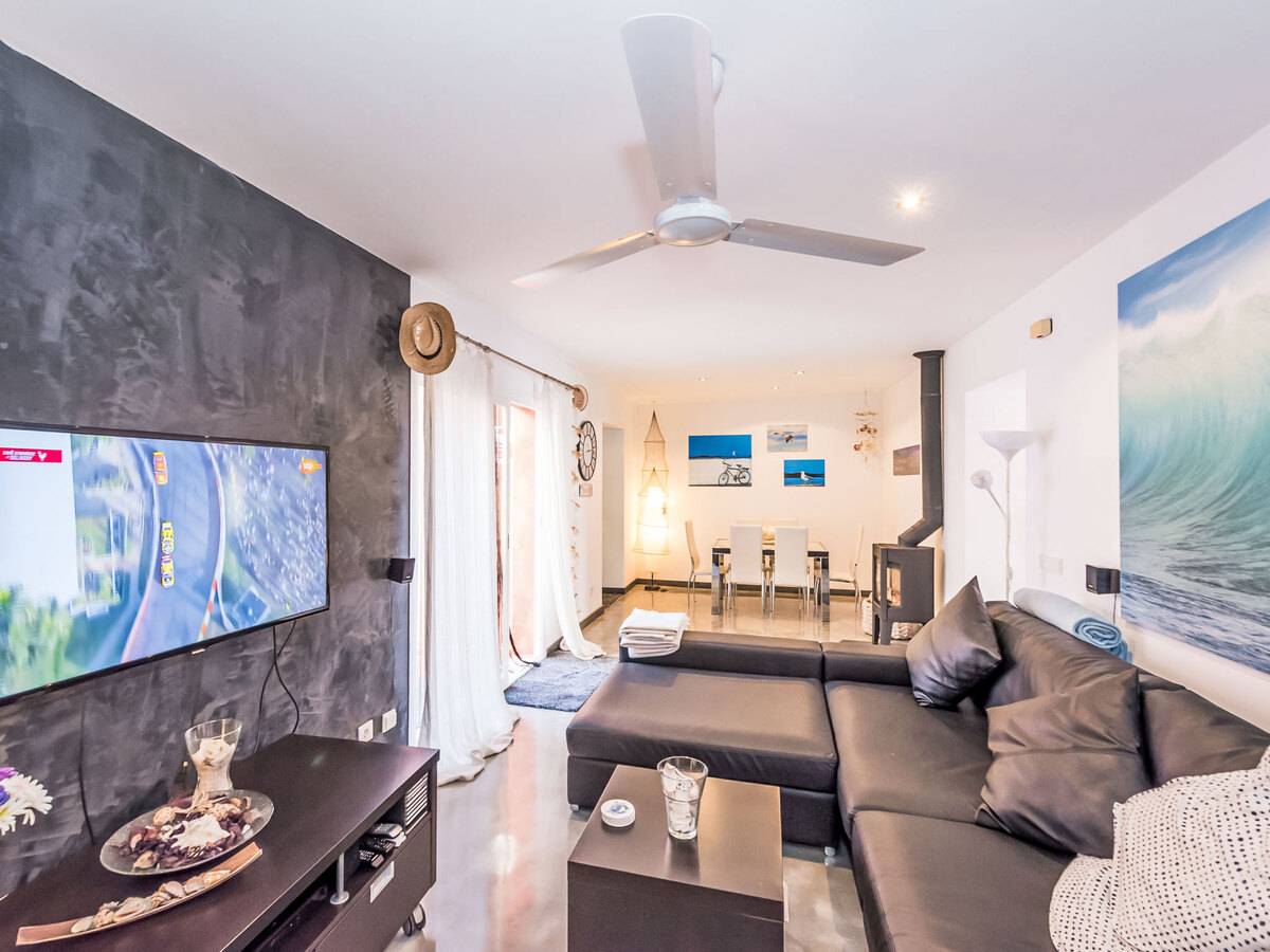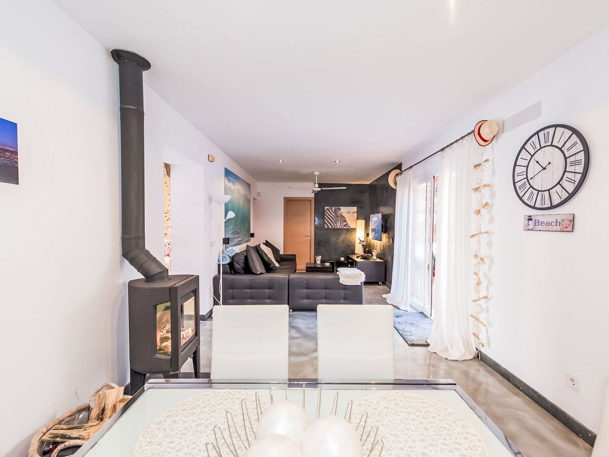 Spacieux et clair, complètement rénovée, aménagement très agréable et plaisant: grand séjour/salle à manger avec porte coulissante avec cheminée, table pour les repas, TV, TV (satellite), écran plat, radio, chaîne stéréo, DVD, air-conditionné, ventilateur et chauffage à air chaud.