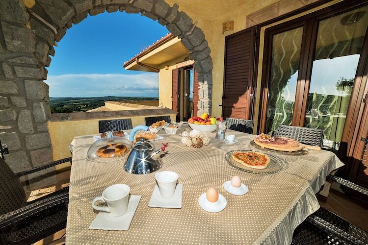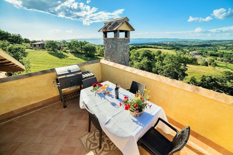Perchée sur une colline verdoyante offrant une vue imprenable sur le lac de Bolsena et la campagne toscane-ombrienne, cette villa de charme est une invitation à la détente idéale pour les familles nombreuses, les groupes d'amis et leurs animaux de compagnie. Elle allie avec élégance le charme rustique au confort moderne. Sa terrasse panoramique sur le toit, ses charmantes vérandas et son vaste jardin ombragé par des chênes centenaires en font le lieu parfait pour se relaxer, dîner et célébrer sous le ciel ouvert.