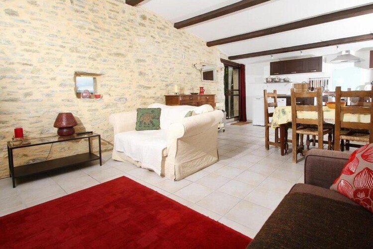 Le gite, adapté pour 4personnes, est situé au premier étage est accesible par un escalier en pierre qui mène à la terrasse surélevée avec l'entrée du gîte. Donnant sur le jardin et la piscine, vous pouvez ici profiter du calme et le paysage magnifique.