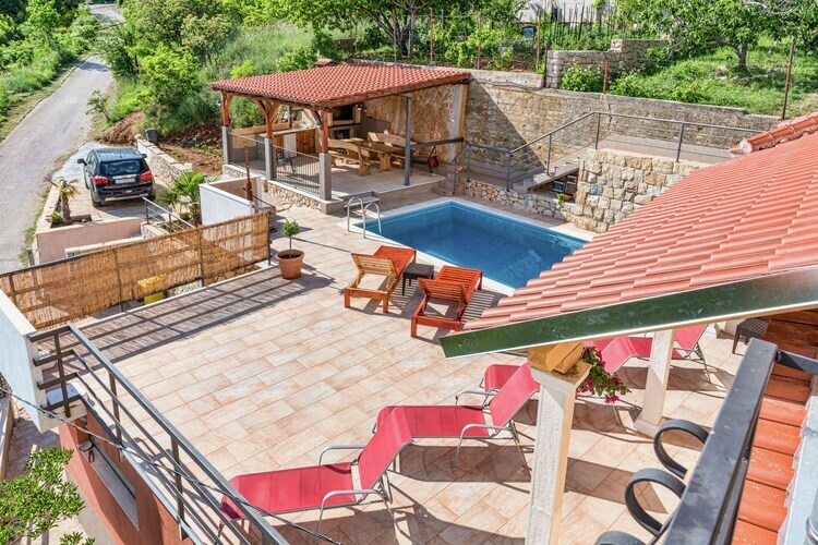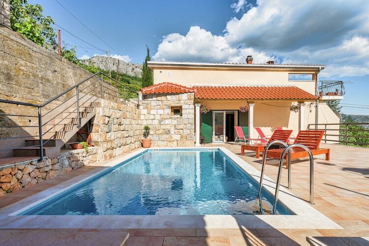 Perché sur une colline près de Solin, vous trouverez cette magnifique villa comprenant 4 chambres à coucher, une piscine privée, un jardin partiellement clôturé et une terrasse. Avec la capacité d'accueillir 9 personnes, cette maison de vacances est parfaite pour les grandes familles et les amis.