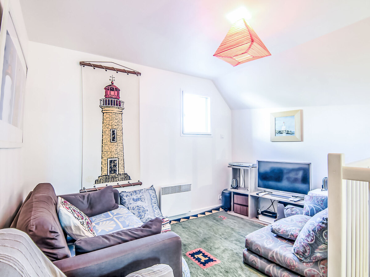 À l'étage supérieur: petit salon ouvert avec TV (écran plat), DVD.