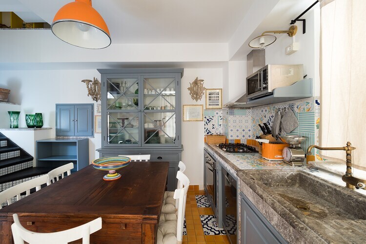 La maison donne sur une rue typique du centre de Taormina, à quelques pas du théâtre antique et Corso Umberto. La maison, sur trois étages, se compose de deux chambres à coucher, trois salles de bains, une cuisine et une belle terrasse donnant sur les toits du centre historique de la ville.