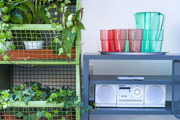 Rez-de-chaussée: (cuisine/salle à manger(cuisinière(4 plaques de cuisson, gaz), cafetière/percolateur, four, micro ondes, lave-vaisselle , congélateur, combinaison réfrigérateur/congélateur), salle à manger-salon(TV(satellite), Lecteur DVD, Lecteur CD, chaise haute), buanderie ) Au 1er étage: (chambre(lit double, TV(satellite)), salle de bains(douche, lavabo, WC, bidet)) Au 2ème étage: (chambre(lit double, TV(satellite)), salle de bains(douche, lavabo, WC, bidet), 2x balcon) Au 3ème étage: (réfrigérateur, terrasse sur le toit, mobilier de jardin) chauffage, climatisation, lit d'enfant