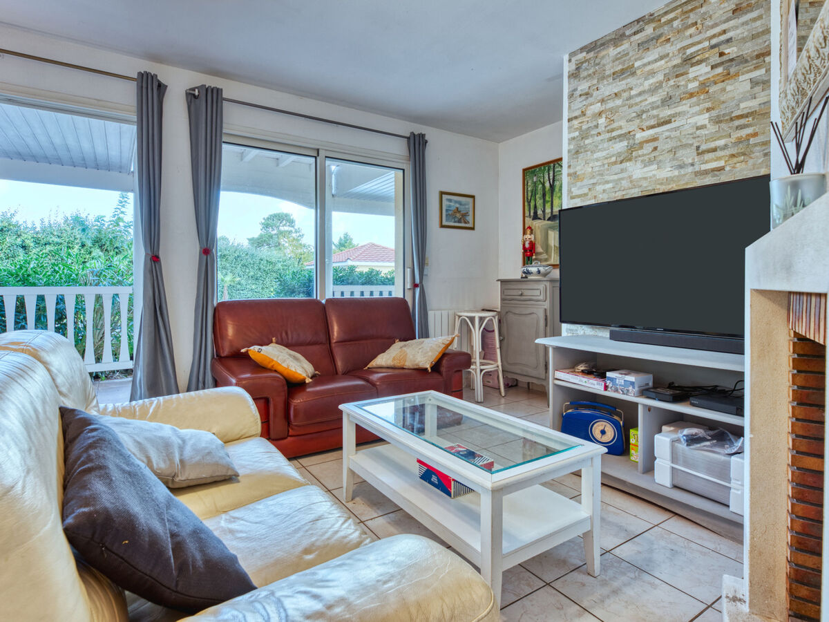 Aménagement confortable: séjour/salle à manger avec cheminée et TV.