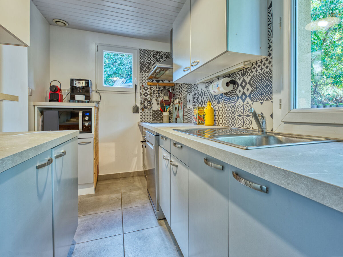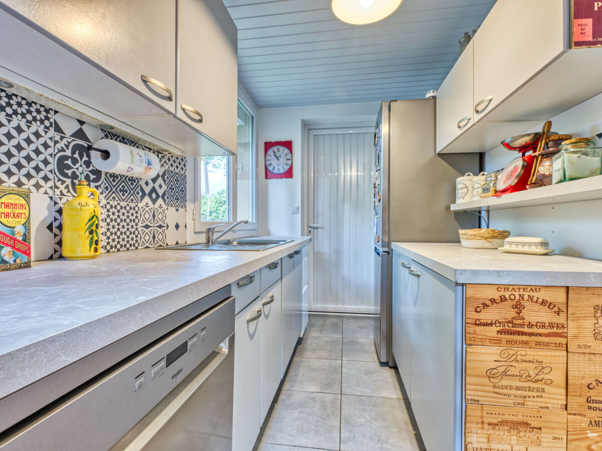 Cuisine ouverte (four, lave-vaisselle, 4 plaques à induction, micro-ondes).