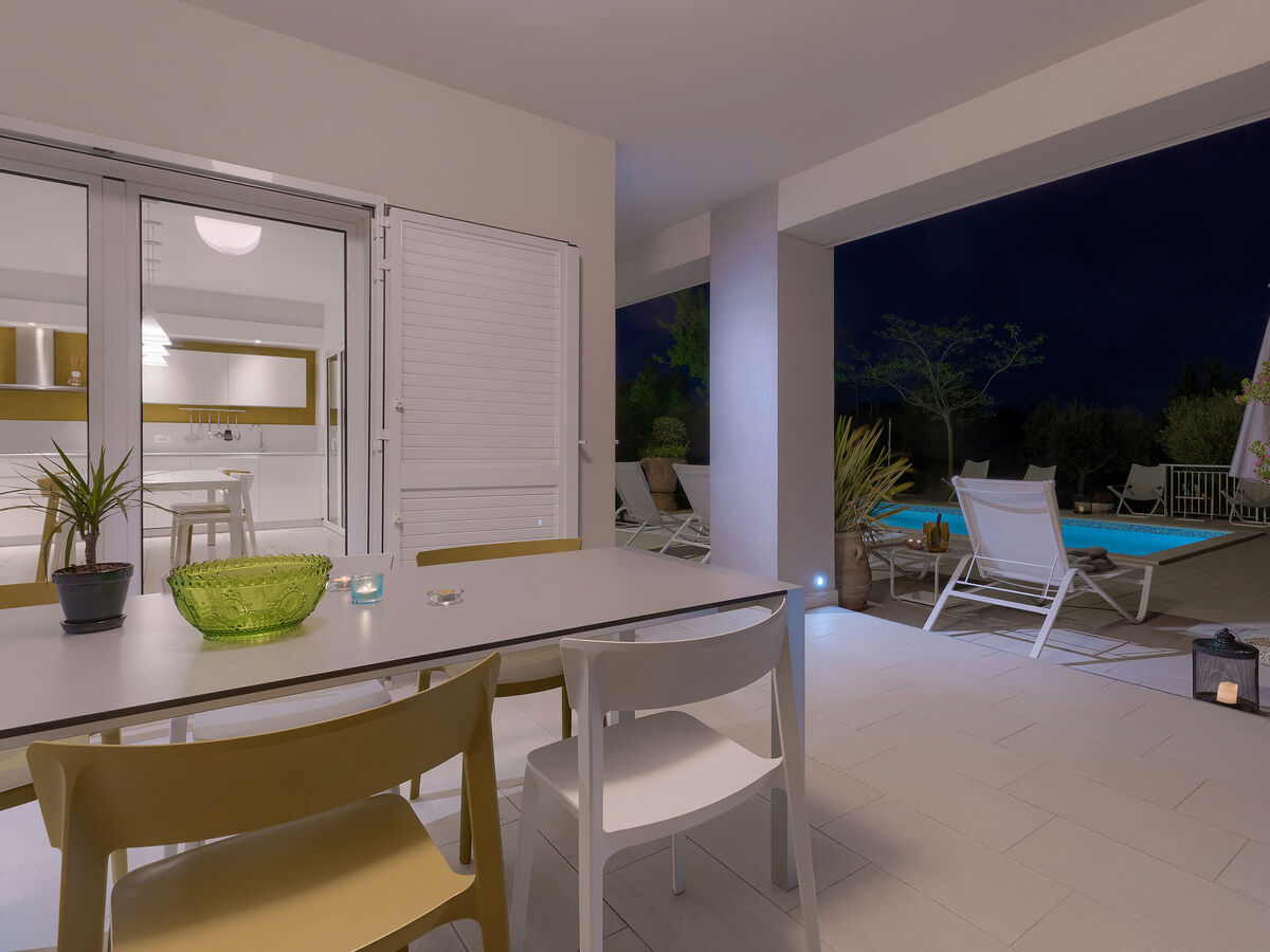A usage privé: terrain 700 m2, jardin avec pelouse et plantes, piscine (8 x 4 m, profondeur 140 cm, disponibilité saisonnière: 01.Mai.