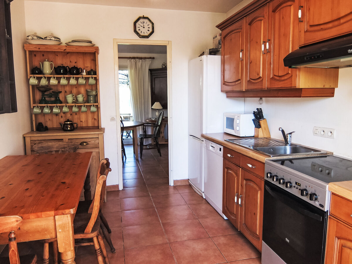 Cuisine (four, lave-vaisselle, 4 plaques vitrocéramiques, grille-pain, bouilloire électrique, micro-ondes, congélateur).