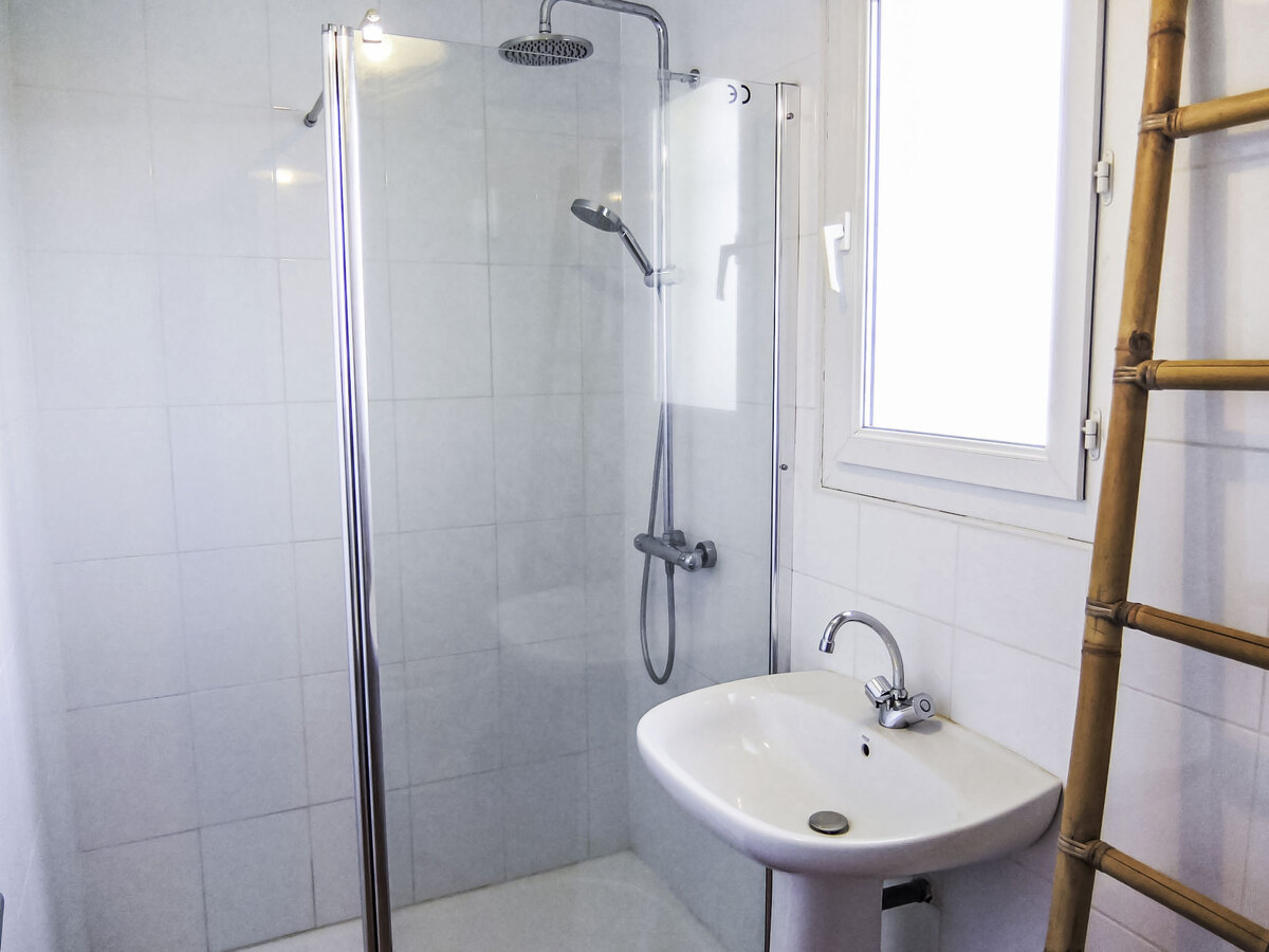 À l'étage supérieur: 1 chambre avec 1 grand-lit (140 cm, longueur 190 cm), douche/WC.