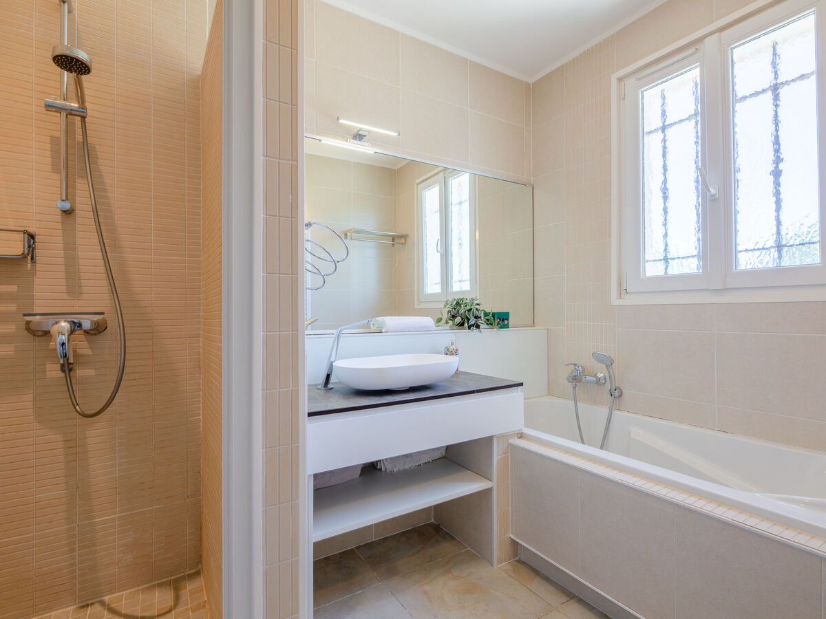 Douche extérieure, bain à remous , pool house, terrasse, meubles de jardin, barbecue, place de parking (pour 2 voitures) sur le terrain.