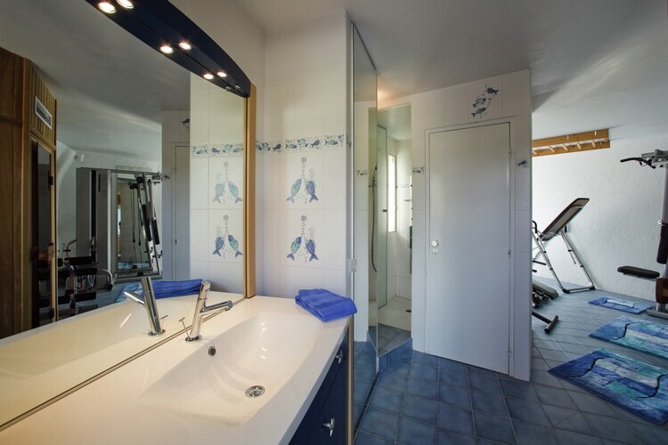 Rez-de-chaussée: (Salle de séjour(coin salon, terrasse), salle à manger(table), cuisine/salle à manger(table, bouilloire, plaque de cuisson(4 foyers), 2x cafetière/percolateur(cups, espresso, filtre), four, micro ondes, lave-vaisselle , combinaison réfrigérateur/congélateur, combinaison réfrigérateur/congélateur), chambre avec salle de bains(lit double(200 x 180 cm), TV(satellite), bouilloire, Bain à bulles, douche, WC, climatisation, terrasse, sèche-cheveux), chambre avec salle de bains(lit double(200 x 180 cm), TV(satellite), bouilloire, baignoire, WC, climatisation, terrasse, sèche-cheveux), buanderie (sèche-linge, lave-linge ), salle de fitness, salle de relaxation(hammam, sauna), climatisation) Au 1er étage: (hall d'entrée(3x coin salon), Salle de séjour(coin salon), salle de télévision(TV(satellite), installation stéréo), chambre(lit double(200 x 180 cm), TV, balcon ou terrasse, climatisation, sèche-cheveux), chambre avec salle de bains(lit double(180 x 200 cm), TV(satellite), bouilloire, douche, WC, climatisation, terrasse, terrasse(couverte), sèche-cheveux), salle de bains(douche, lavabo, WC), climatisation) Poolhouse: (bar) salle de jeux, garage, cheminée, poêle, lave-vaisselle , baignoire où douche, spa nordique, douche a jets, patio, climatisation, terrasse, jardin, jardin(clôturé, 1,5 hm2), mobilier de jardin, transats, barbecue, parking, chaises longues, parasol, piscine(privé, 15 x 8 m.), court de tennis(partagé avec d'autres clients), tennis de table/ping-pong, appareils de fitness, lit d'enfant, table à repasser, Alarme