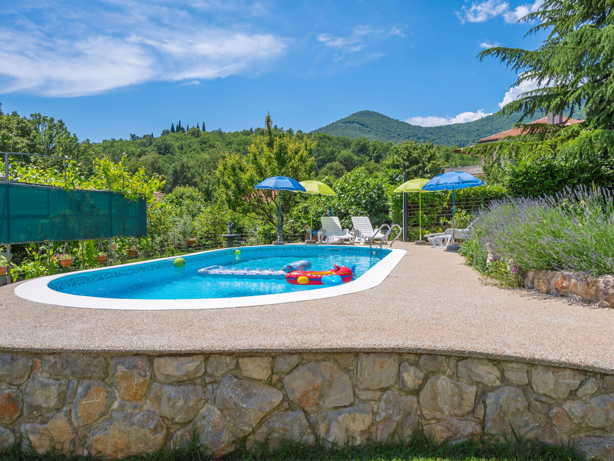 Dans le haut de la station d'Opatija, dans le hameau de Mihelići, à 1.7 km du centre de Matulji, à 5 km du centre d'Opatija, situation tranquille, ensoleillée, à 3.5 km de la mer, à 3.5 km de la plage, dans une impasse, dans la verdure.