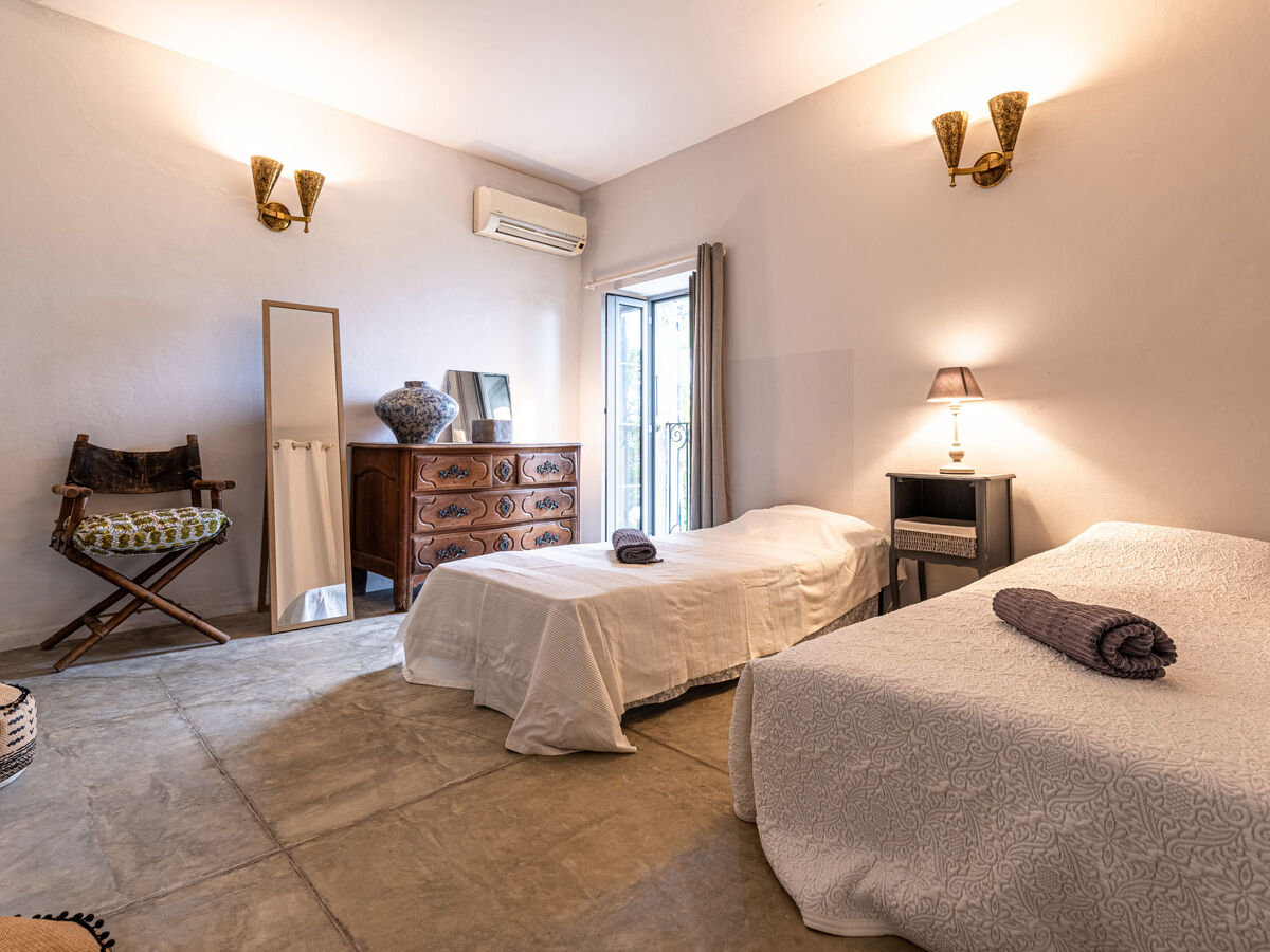 Dans la localité, situation tranquille, surélevée sur un versant, à 2 km de la mer, à 10 km de la plage, dans une impasse, dans la verdure, dans une zone piétonne.