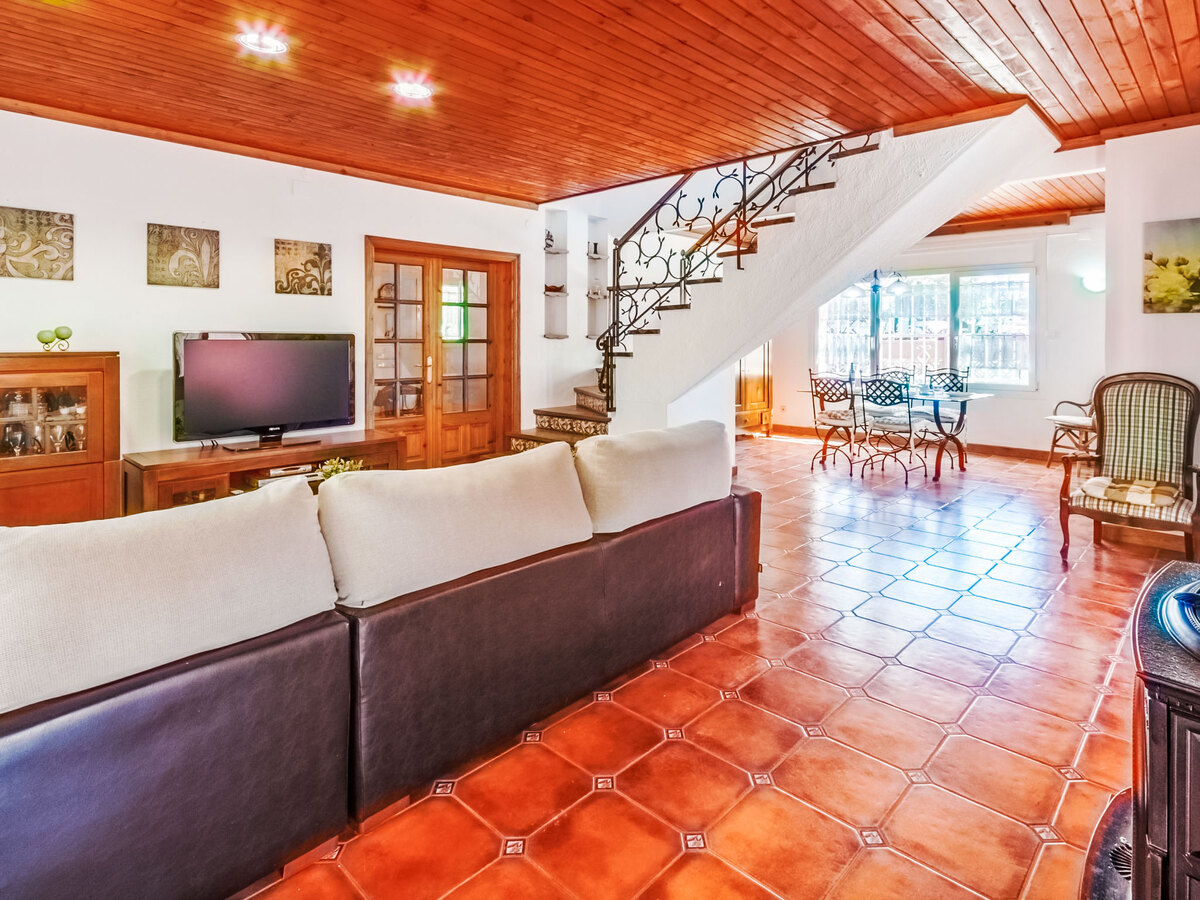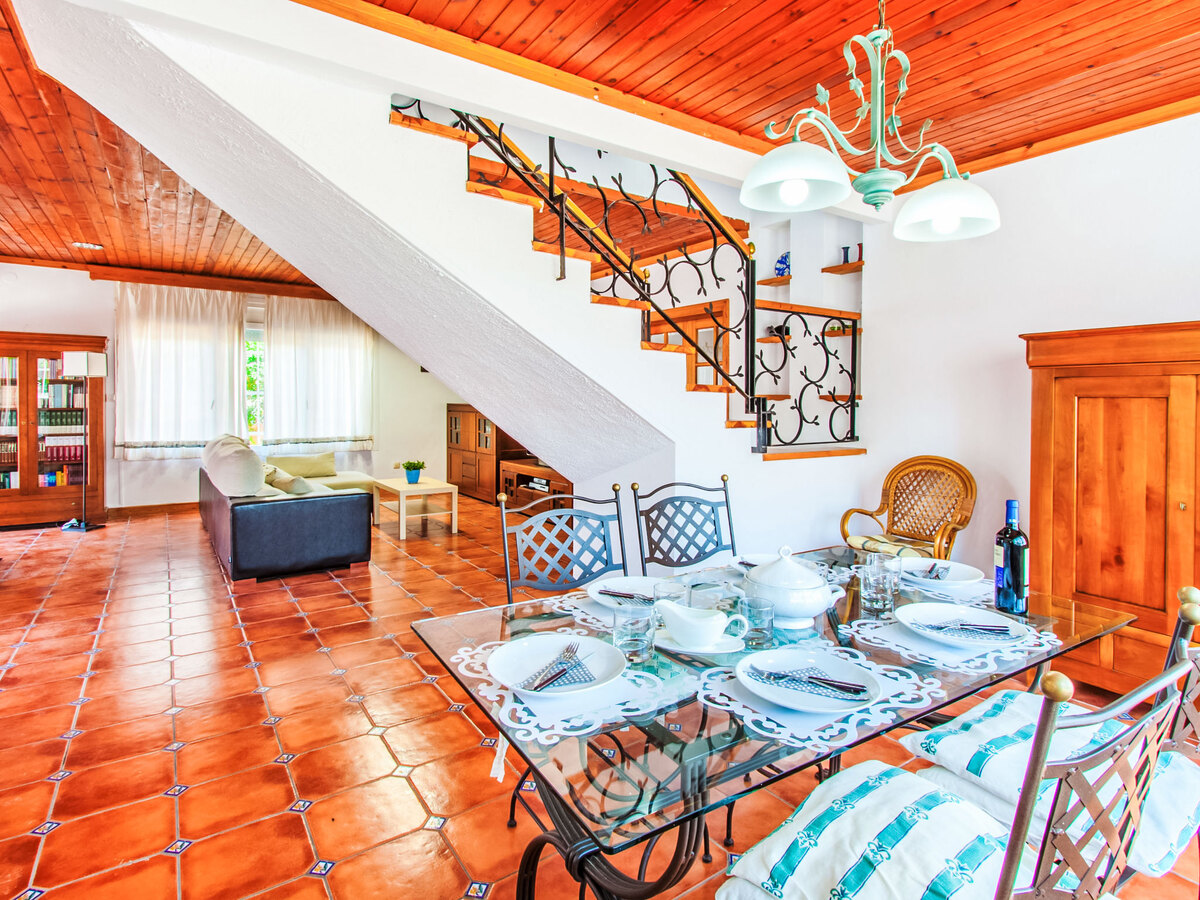 Spacieux et clair, aménagement confortable et agréable: séjour/salle à manger avec cheminée, table pour les repas, TV (satellite), écran plat, air-conditionné et chauffage à air chaud.