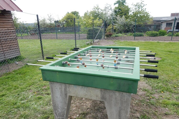Rez-de-chaussée: (cuisine(plaque de cuisson(4 foyers, vitrocéramique), cafetière/percolateur, four, micro ondes, lave-vaisselle , combinaison réfrigérateur/congélateur), salle à manger-salon(TV, table, coin salon), chambre(lit double(140 x 200 cm)), chambre(lits superposés pour 3 personnes), salle de bains(douche, lavabo, lave-linge ), WC) jardin, mobilier de jardin, transats, barbecue, équipements de jeux(partagé avec d'autres clients), baby-foot