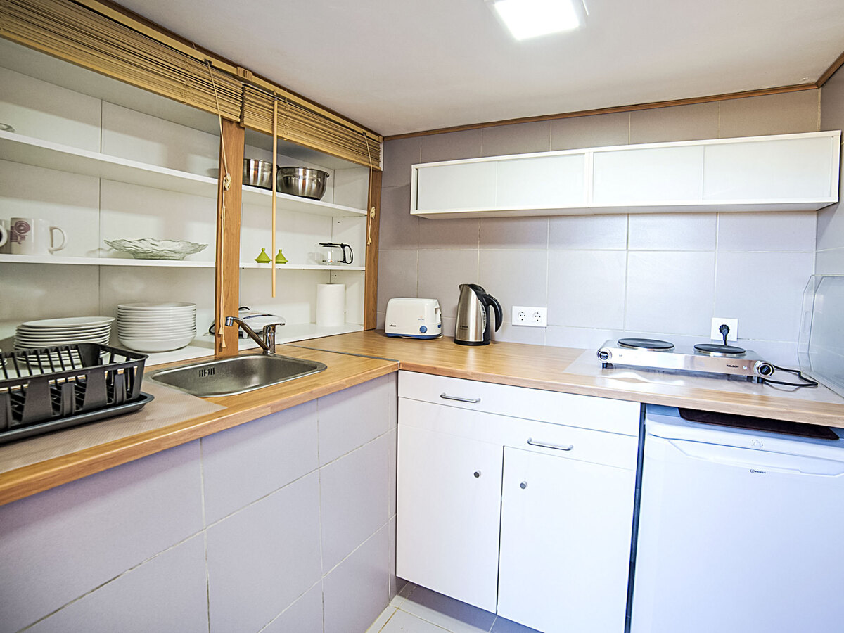 Cuisine ouverte (4 plaques de cuisson, four, lave-vaisselle, micro-ondes).