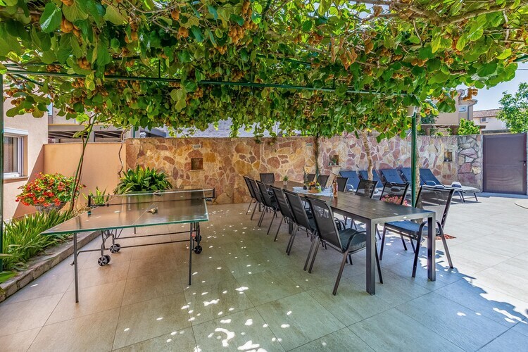 À l'intérieur, le rez-de-chaussée comprend deux cuisines entièrement équipées avec four, micro-ondes et lave-vaisselle, deux salons/salles à manger, deux chambres avec lits doubles et deux salles de bains avec douches et toilettes. Le premier étage offre deux cuisines supplémentaires, deux salons/salles à manger, trois chambres, dont une avec lits superposés, et deux salles de bains. Le grenier comprend deux autres chambres avec lits jumeaux et une salle de bains supplémentaire, ce qui rend cette villa idéale pour les grands rassemblements. Vous pourrez également profiter de la climatisation, d'un espace barbecue, d'une table de ping-pong et d'un parking sur place.