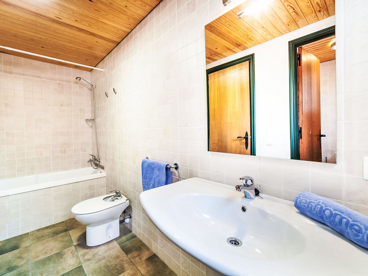1 chambre double avec 1 grand-lit (160 cm, longueur 200 cm), bain/bidet/WC.