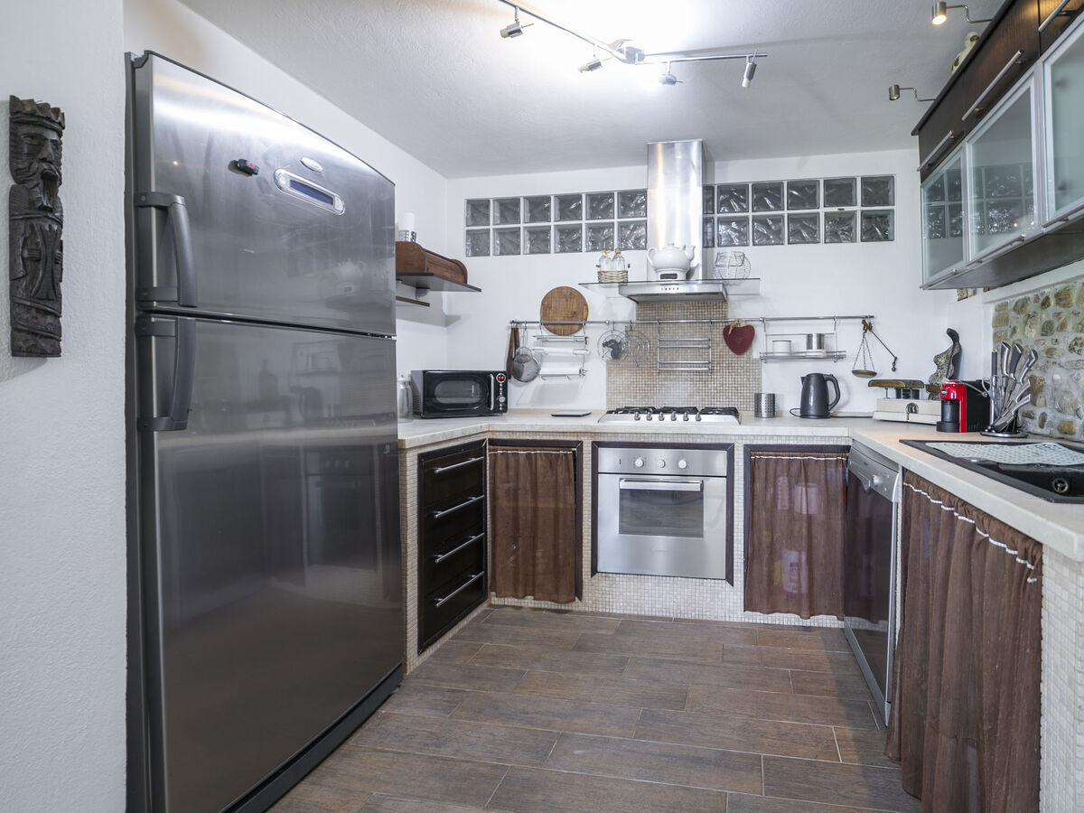 Cuisine ouverte (4 plaques de cuisson, four, lave-vaisselle, grille-pain, bouilloire électrique, micro-ondes, congélateur).