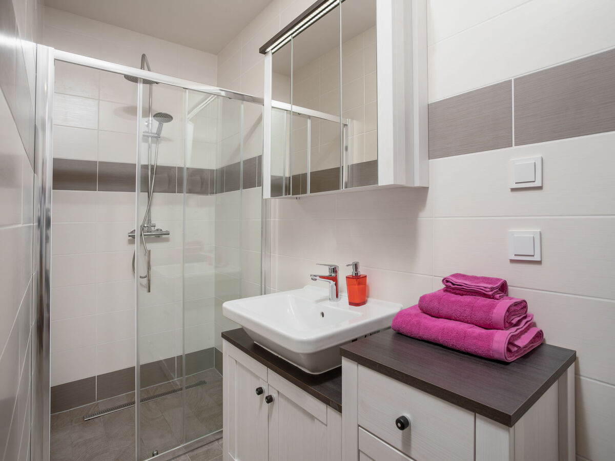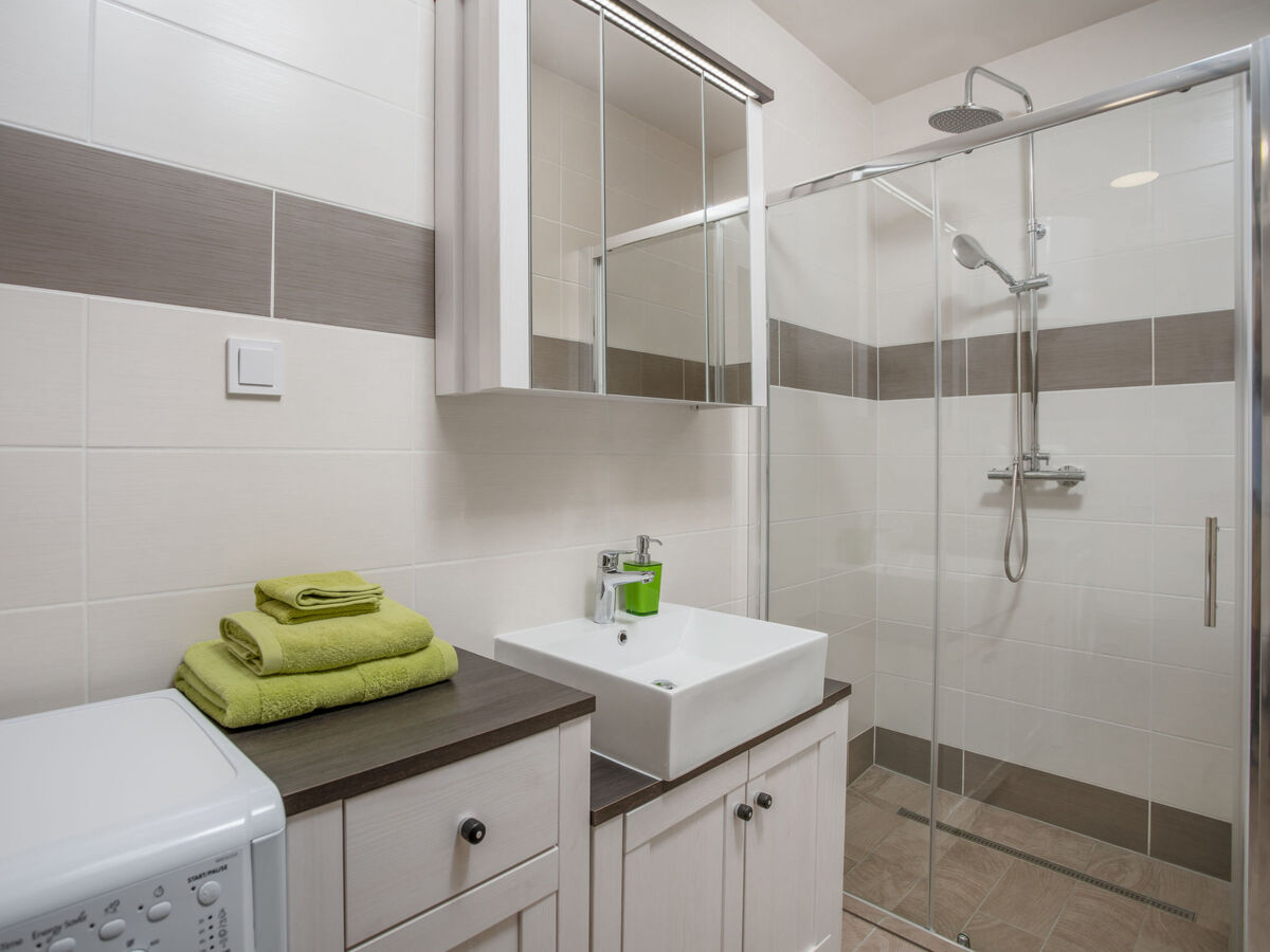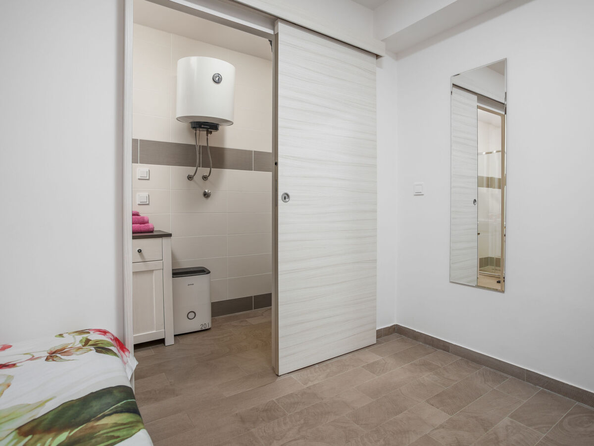 À l'étage inférieur: (escalier en colimaçon) 2 chambres, chaque chambre avec: 1 grand-lit (160 cm, longueur 190 cm), douche/WC.