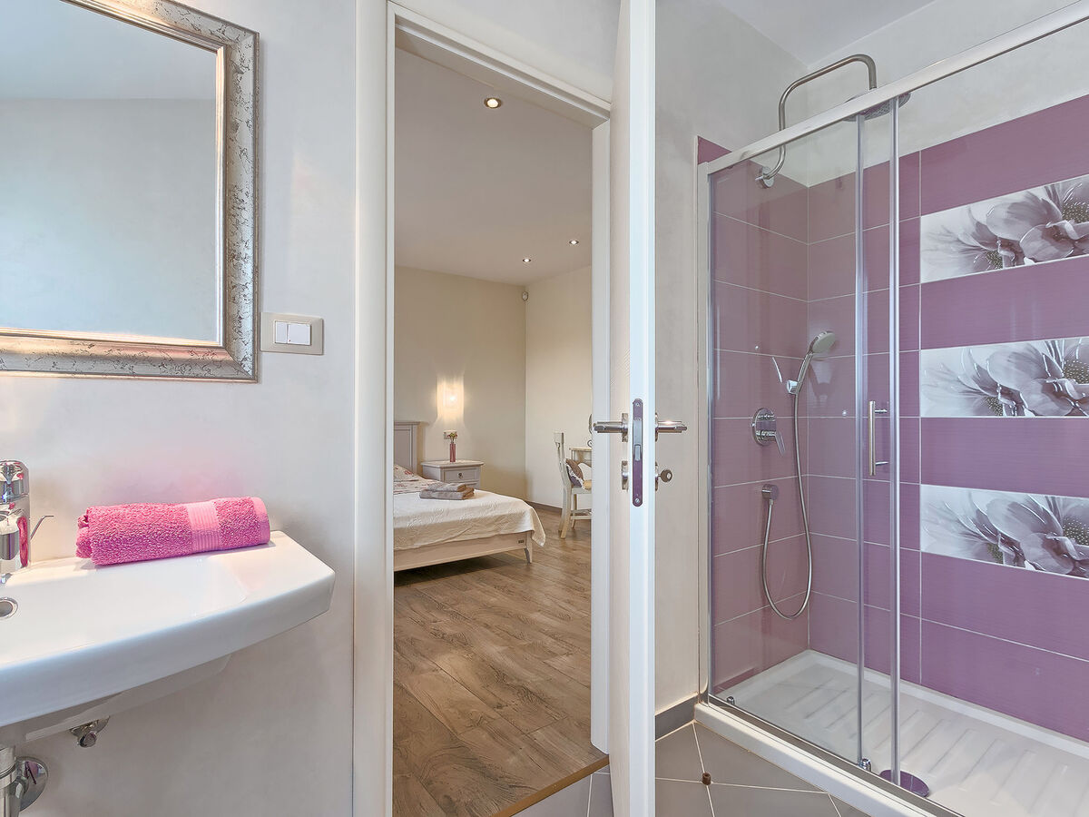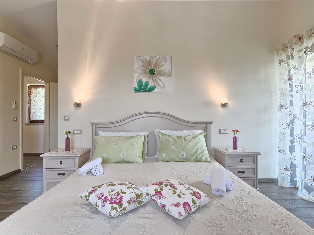 1 chambre avec 1 grand-lit (160 cm, longueur 200 cm), douche/bidet/WC et air-conditionné.