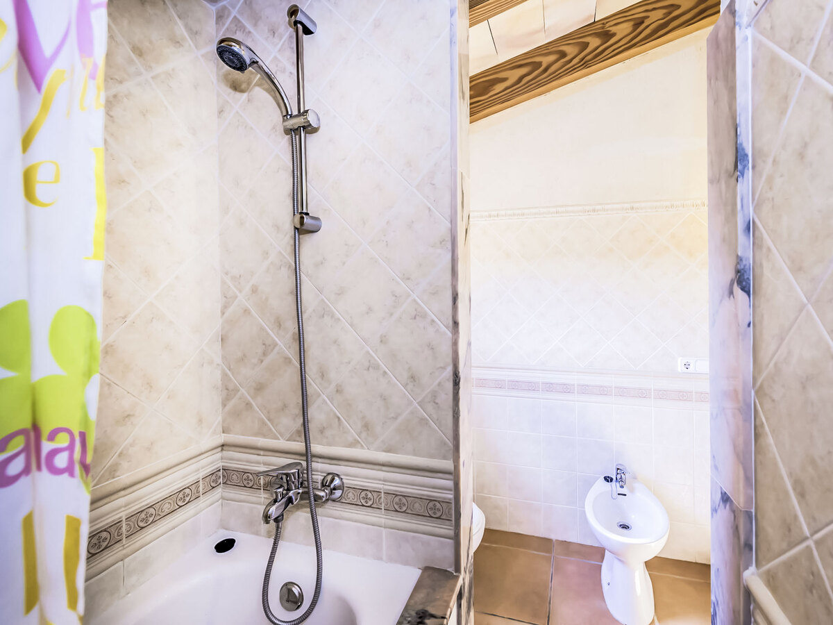 Bain/bidet/WC avec baignoire d'angle.