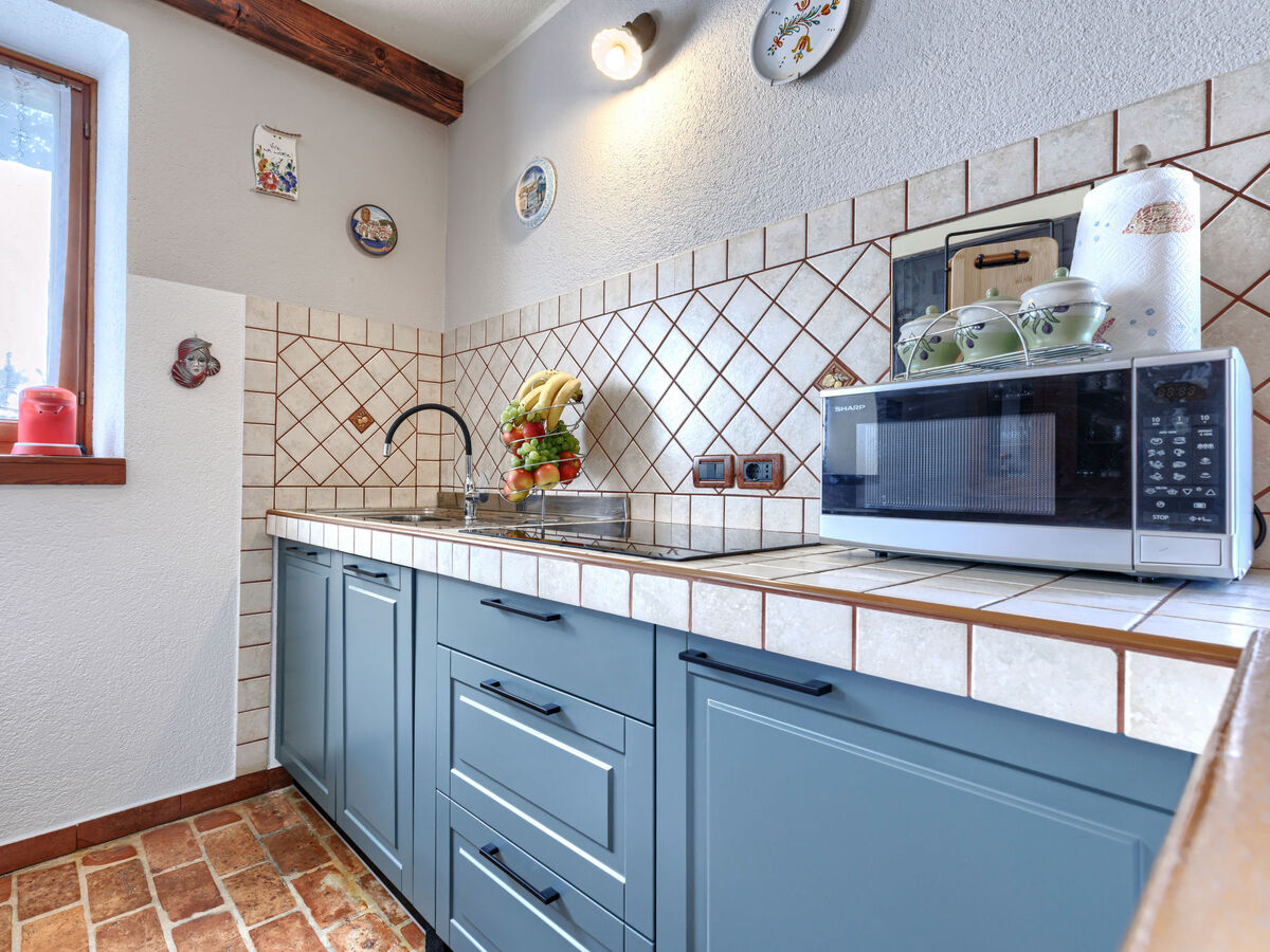 Cuisine ouverte (4 plaques de cuisson, micro-ondes, cafetière électrique).