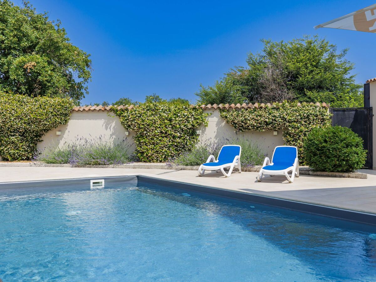 A usage privé: terrain 500 m2 (clôturé), jardin avec plantes, piscine rectangulaire (8 x 4 m, profondeur 140 cm, disponibilité saisonnière: 01.Jun.