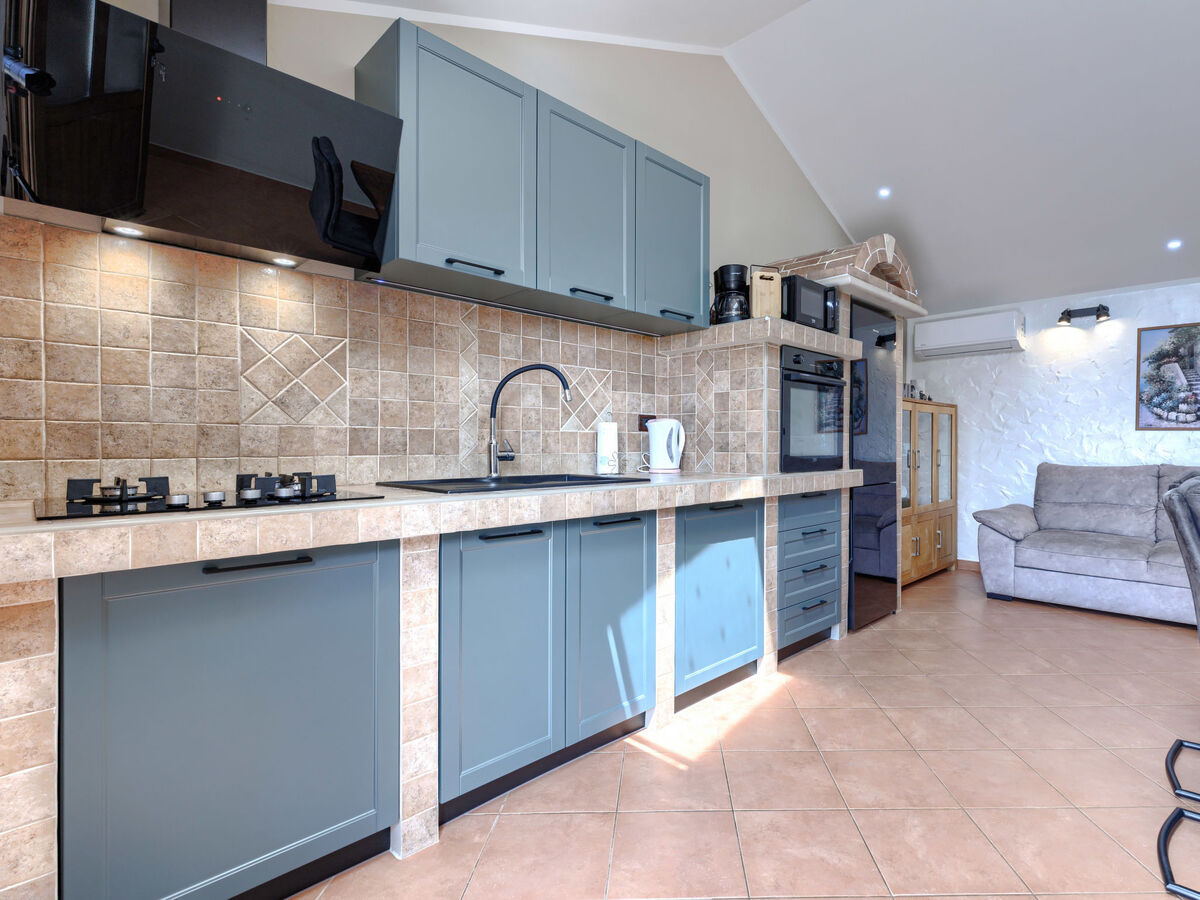 Cuisine ouverte (4 plaques de cuisson, four, lave-vaisselle, micro-ondes, congélateur, cafetière électrique).