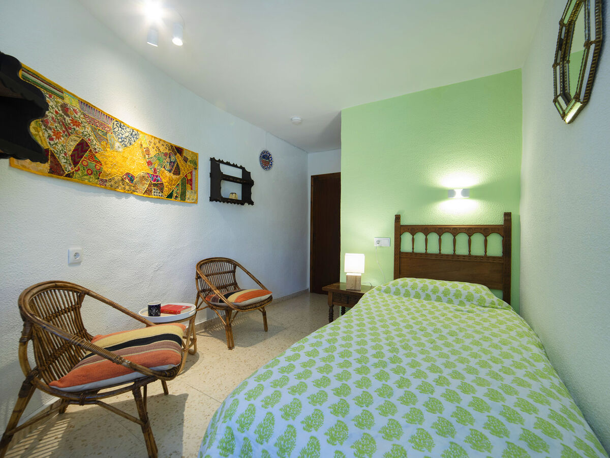 1 chambre avec 1 lit (90 cm, longueur 190 cm), ventilateur.