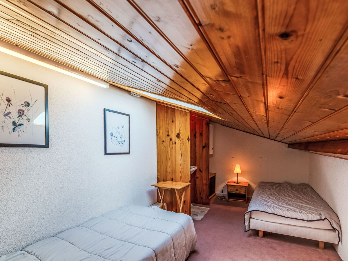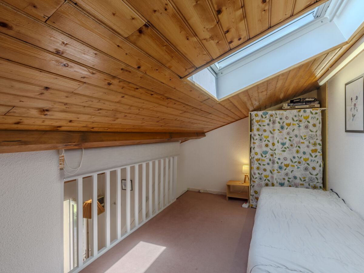 À l'étage supérieur: galerie mansardée avec fenêtre sous le toit avec 2 lits (80 cm, longueur 190 cm).