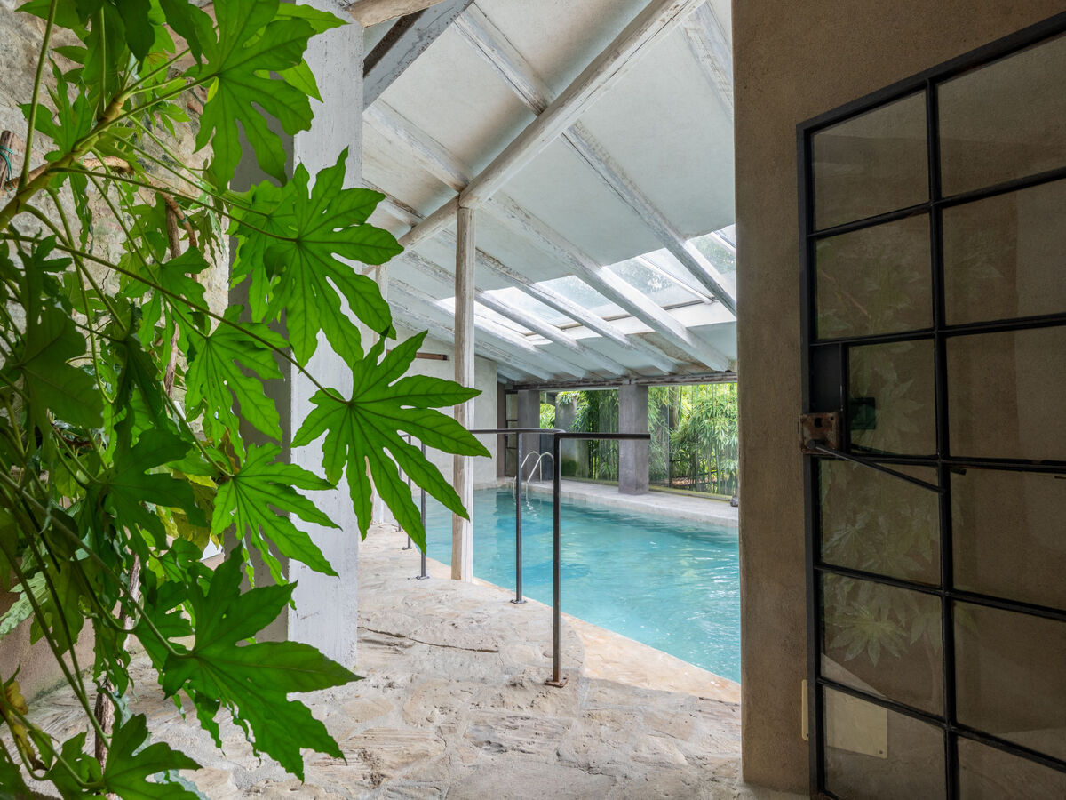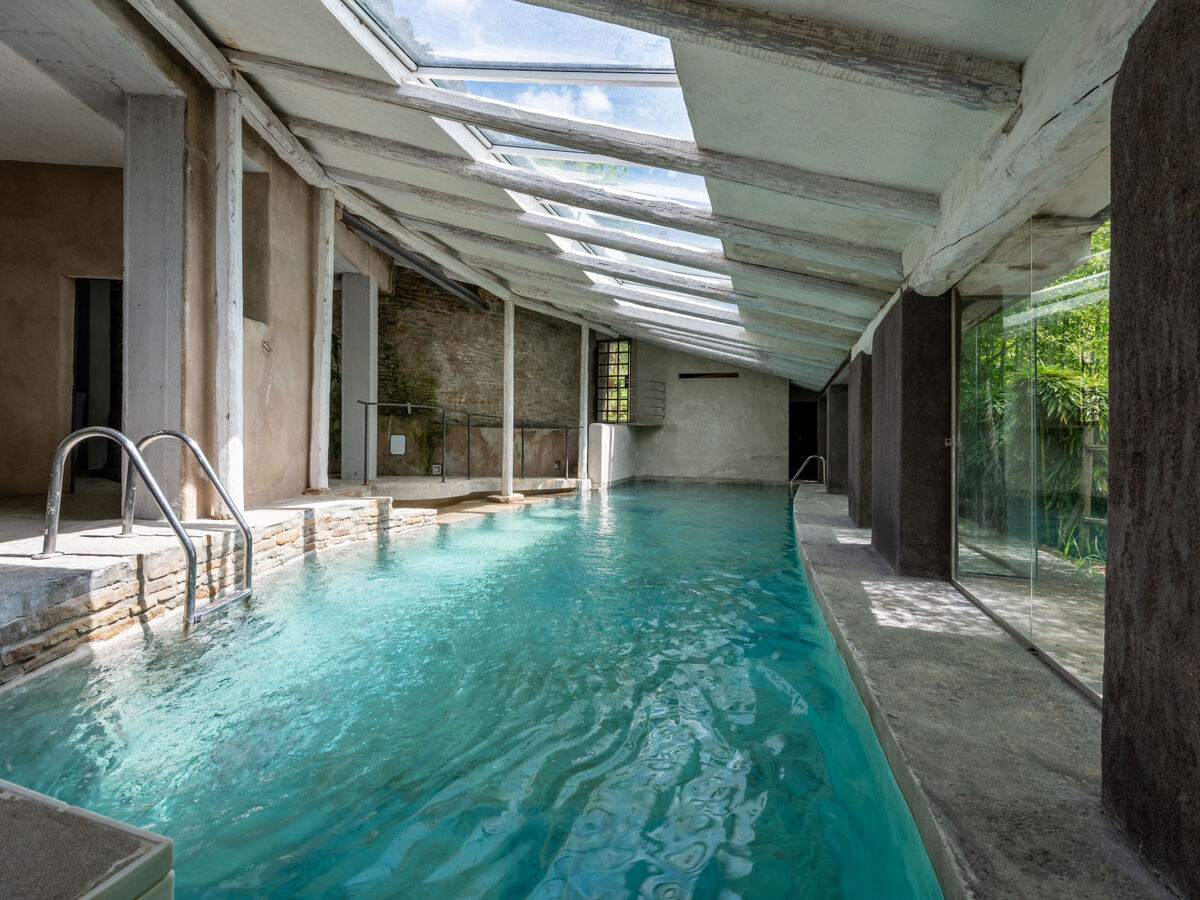A usage privé: parc 10 ha avec plantes et arbres, piscine couverte (13 x 4 m, profondeur 140 cm, disponibilité saisonnière: 01.Jun.