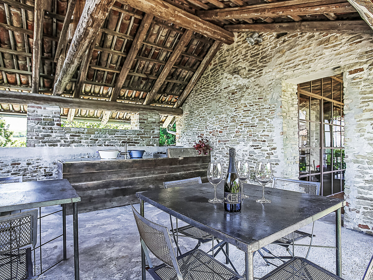 La résidence de vacances est située en face d’une cour ancienne où se trouve une entreprise viticole biologique.