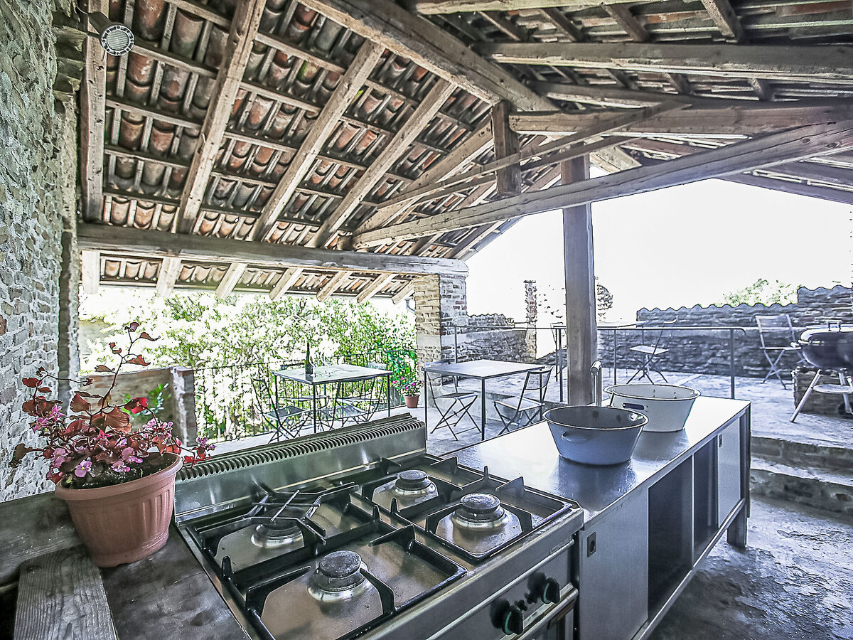 Trezzo Tinella à 10 km de Alba: Grande maison de maître historique "Borgo del Riondino", 550 m au dessus du niveau de la mer, du 15ème siècle, rénovée, environnée par les champs et vignobles.