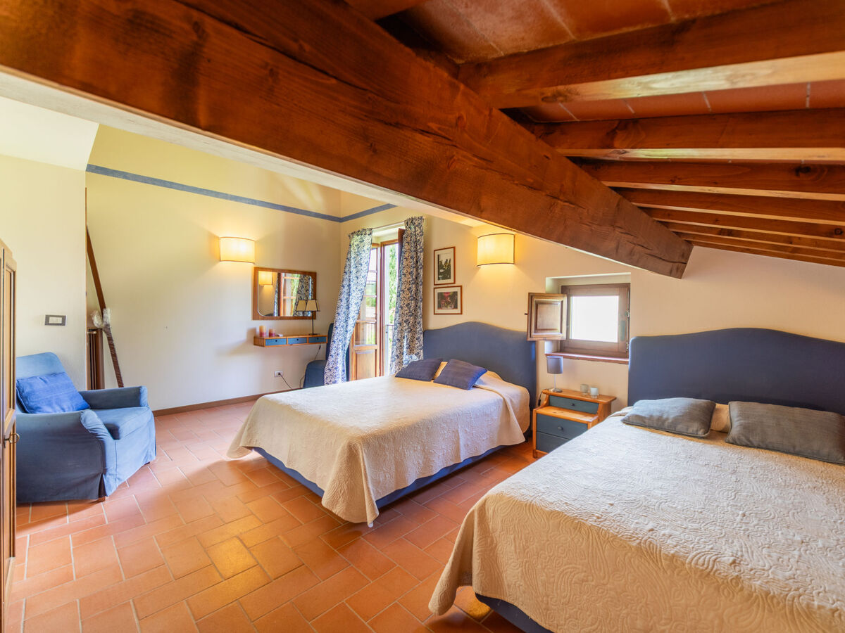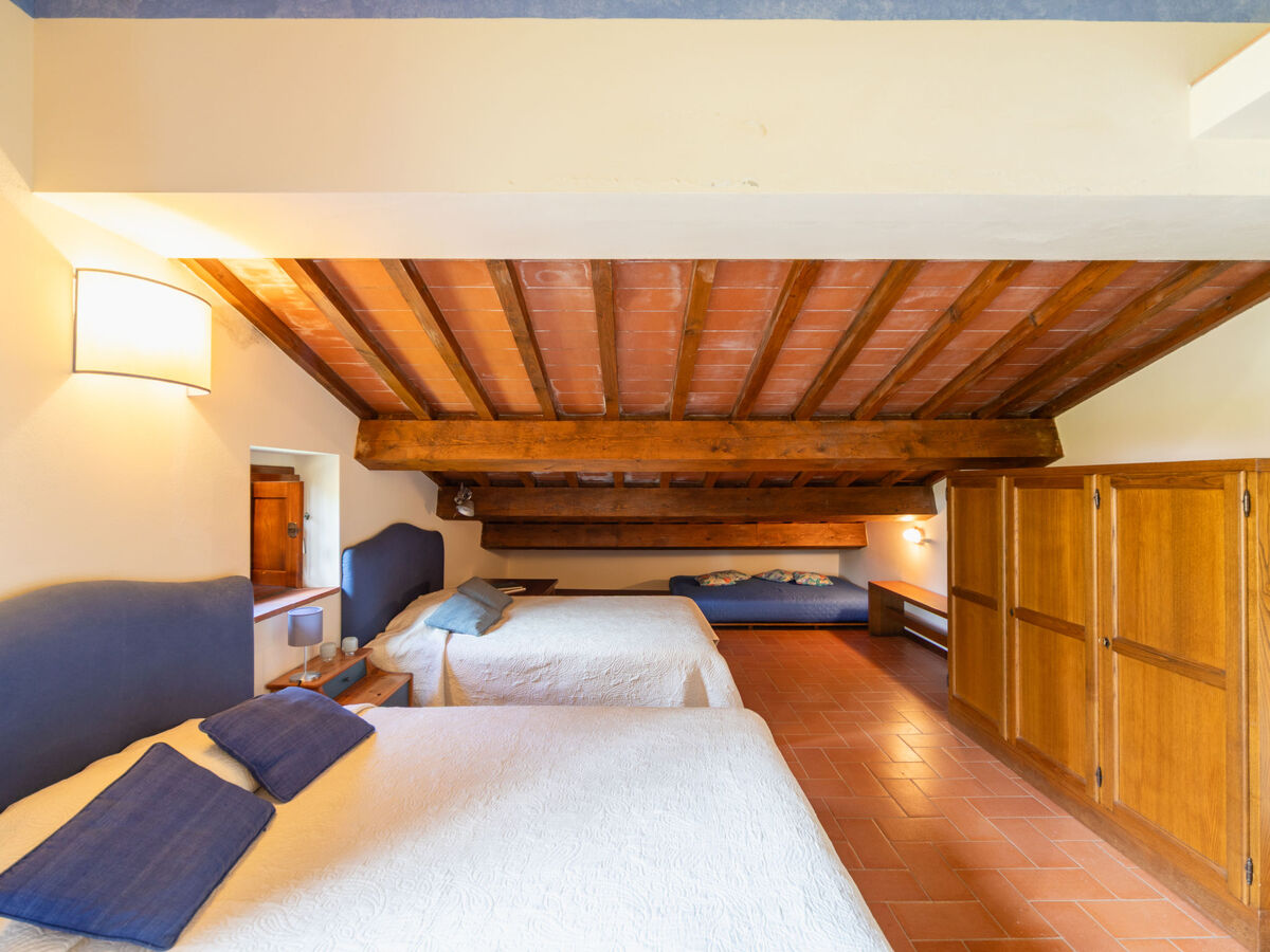 Deux maisons (I Lecci, La Pieve) se situent sur une pittoresque petite place, tandis que "La Torre" et "La Corte" font partie d'une autre bâtisse, séparée par une cour centrale qui est à disposition exclusive de "La Corte" (IT 5269.951.5).