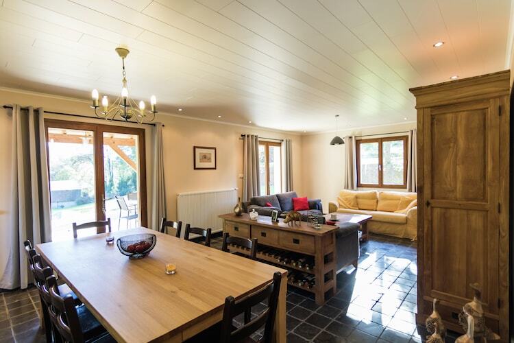 Rez-de-chaussée: (cuisine(bouilloire, grille-pain, plaque de cuisson(5 foyers, gaz), hotte, cafetière/percolateur(filtre), four, micro ondes, lave-vaisselle , combinaison réfrigérateur/congélateur), salle à manger-salon(TV(écran plat), table(10 personnes), coin salon, Lecteur DVD), chambre avec salle de bains(lit double(couette 2 personnes, synthétique, 160 x 200 cm), douche, lavabo), réserve(réfrigérateur, sèche-linge, lave-linge , table à repasser, fer à repasser), WC) Au 1er étage: (chambre(lit double(couette 2 personnes, synthétique, 140 x 200 cm)), chambre(lit double(couette 2 personnes, synthétique, 160 x 200 cm)), chambre(lit simple, Lit superposé), salle de bains(baignoire-douche, lavabo), WC) lit parapluie, chauffage(central), terrasse(privé, couverte), jardin(privé, aménagé), mobilier de jardin(9 personnes), barbecue(charbon de bois), chaises longues, parasol, piscine(privé, chauffée, couverte, 10 x 4 m., ouvert de Mai jusqu'à (inclus) Sept), chaise haute